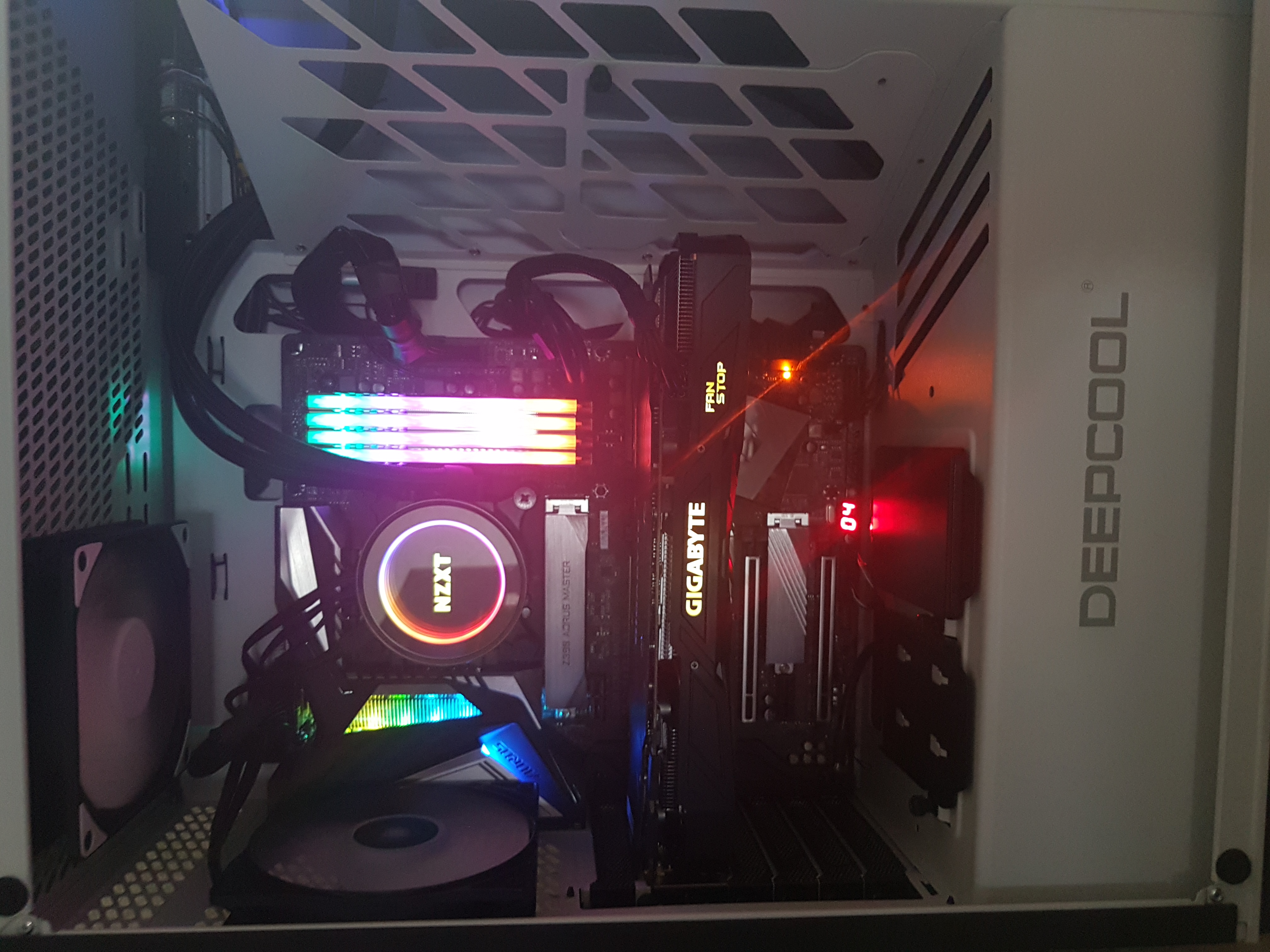 1) Подскажите, должна ли светиться надпись AORUS? у меня получается светится только радиатор, но не сама надпись. У всех так? Вот что светится у меня: