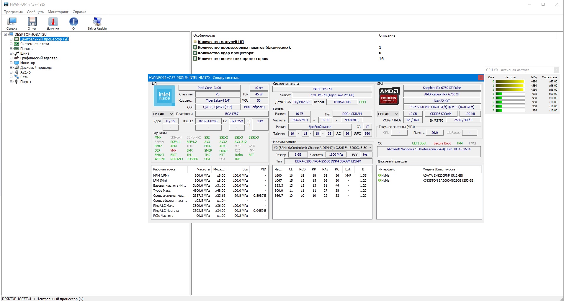 Все остальное замечательно работает, видяха RX 6750 XT, 2 nvme ssd (SSD ADATA XPG SX8200 Pro [ASX8200PNP-512GT-C]), оперативная память G.Skill RIPJAWS V [F4-3200C16D-16GVKB] 16 ГБ И не работает сон, он мне нафиг не нужен.
