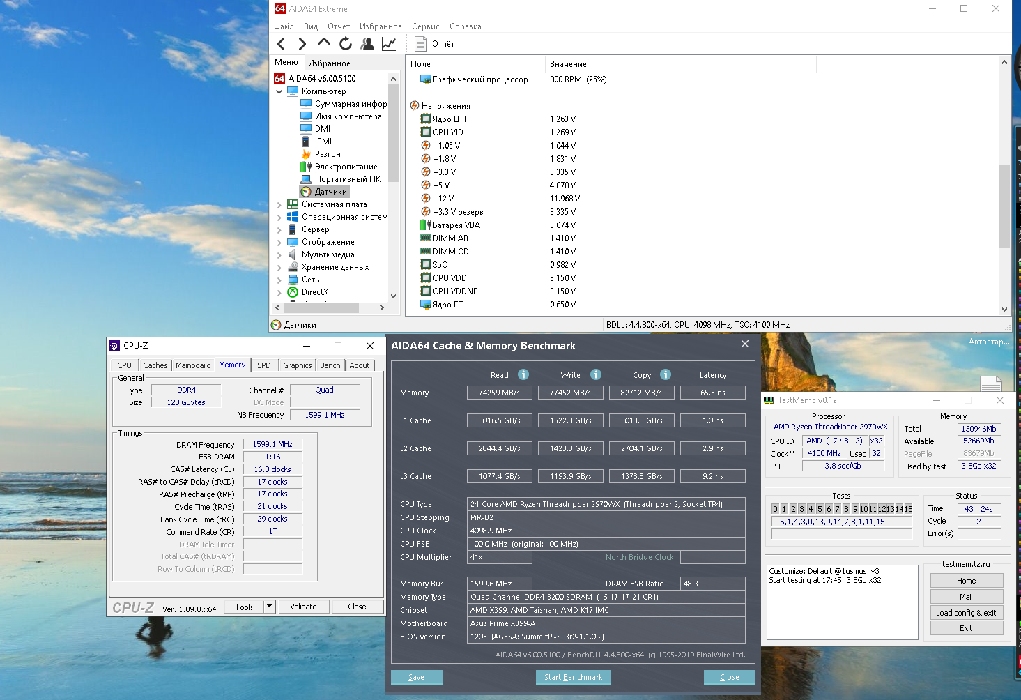 ROG Zenith Extreme Alpha Corsair DDR4 64 гб (4 х 16 гб), CMW64GX4M4K3600C18 - два кита на 128ГБ 2990wx