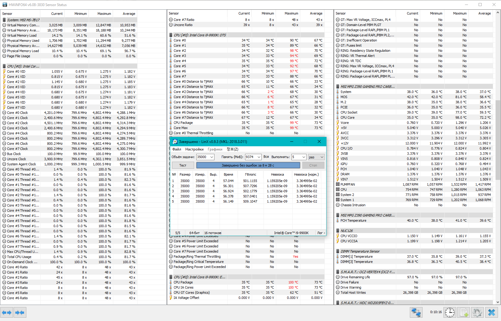 Мать Z390 MEG ACE, камень 9900k@4.8gHz.
