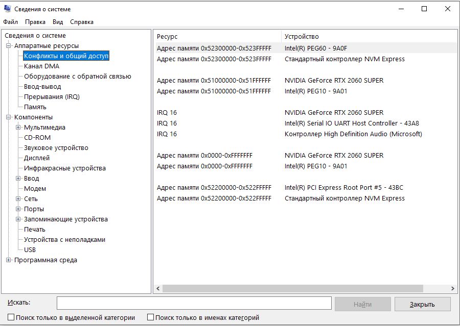 Есть у кого нибудь возможность поделиться скрином из MSinfo, раздел Конфликты и общий доступ