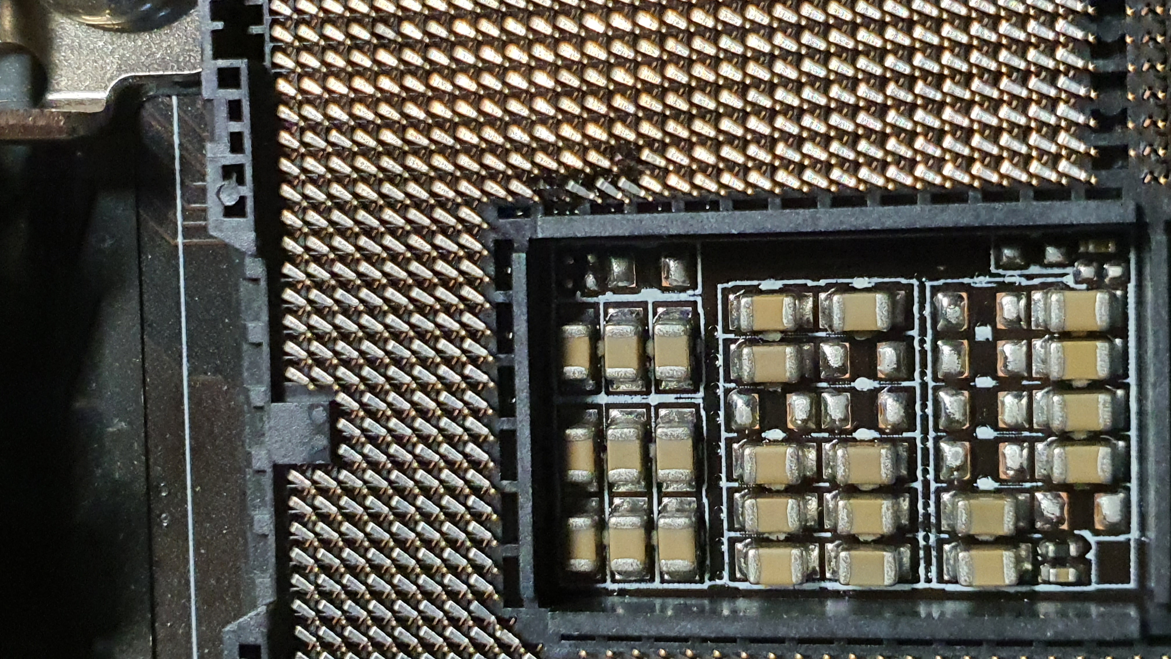 Gigabyte: если не изолировать бОльшую зону контактов, отмеченных красным, то у платы сгорит одна из фаз питания процессора, а контакты останутся целы. Если изоляция есть, но частично сползет, то соответствующие пины в сокете сгорят, как предохранитель. Работоспособность системы в обоих случаях не пострадает.