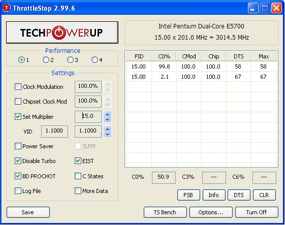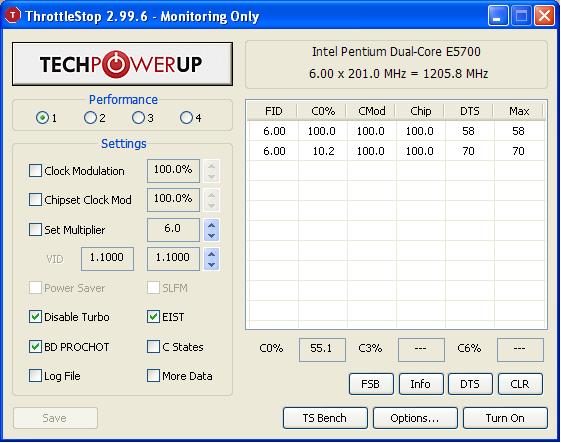 С множителем ситуация такая, частоту с x6 показывает POST, но ХР в свойствах системы показывает правильно, 2.9@2.9 CPUZ показывает все время 1600, даже при запуске теста prime'95. Но если через TrottleStop включить управление множителем, то можно вручную выставить его на 11.