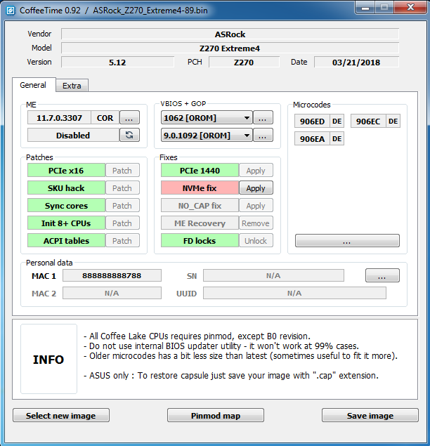 Единственное что заметил, когда пробую сам сделать модбиос - не получается изменить версию МЕ