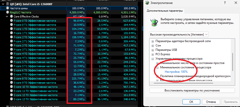 При воспроизведении ролика на ютубе или фильма в плеере: ~1.296-1.308V - режим высокой производительности ~0.730-0.750V - сбалансированный режим Загрузка процессора при этом: 0-1%.