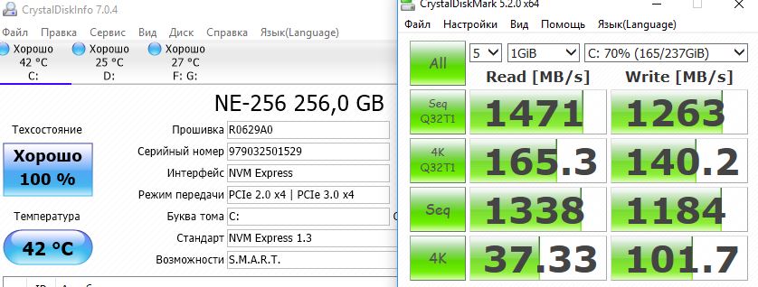 Поделись ещё пожалуйста данными из CrystalDiskMark и CrystalDiskInfo по NVMe на разных биосах, если не сложно. От себя добавлю, что вольтмод одинаковый на 1.01 и 1.02, проверено лично. В моём случае память даёт примерно 55000мб/с на чтение, запись и копирование в стоковом биосе на 1866 CL9 (ревизия 1.02). Изначально были просадки по скорости ОЗУ, вылечилось полным отключением питания на некоторое время (дернул шнур с БП). Про разгон пока ничего не скажу, потому что на стоковом биосе множитель ограничен значением 39. Относительно появления лишних ядер в кастомном биосе - тоже самое есть и в 1.01 ревизии. К этому добавляется "зависание" значений напряжения под нагрузкой, которое лечится изменением параметра энергоэффективности ПОСЛЕ правки множителей. И сломанный спидстеп, который пока не понимаю как лечить. На стоке в 1.02 спидстеп работает нормально тут отписывался, если что: Китайский LGA2011 (Huanan X79 2.XX, X79Z 2.Xx, YW-X79-E, G218a, x79-m, ms-7777, 3.2x, 3.3A, 3.5a-c) #16204750