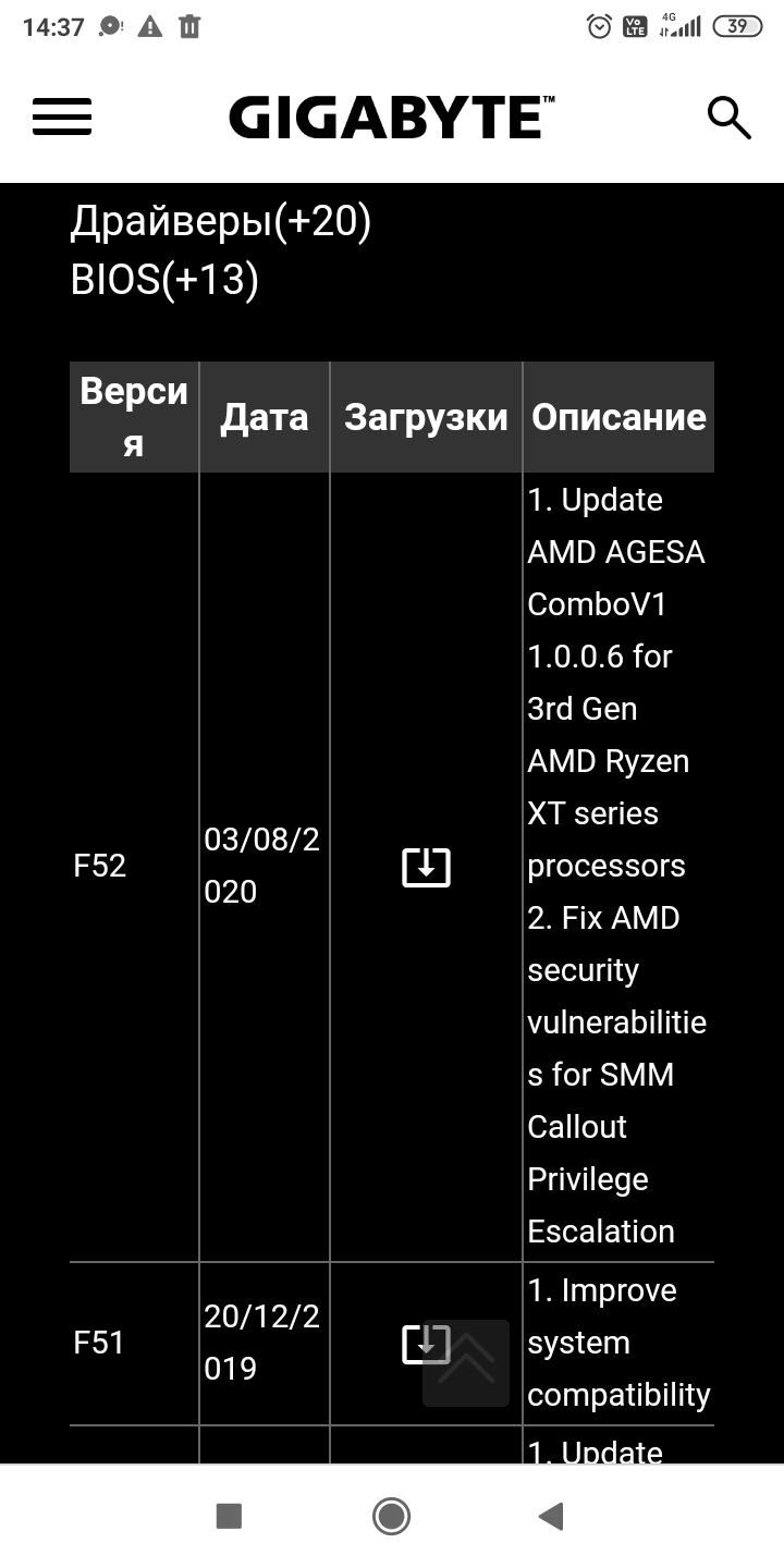 Ребят, проблемка, подскажите пожалуйста Имею b450 gigabyte aorus elite. Чёрт меня дернул обновить биос с пред-перд последнего на последний. С флешки как обычно начал разворачиваться, до 100% дошёл, показал экран, что перезагрузка через 5 сек. Перезагрузился и больше не включается. Горит на плате VGA LED. ПРобовал уже биос перемычкой сбрасывать, таблетку вынимал. Видеокарта 1660, пробовал заведомо рабочие мамонты 8400GS и 7300 в оба слота. Не помогает. Всё равно горит индикатор VGA, картинки нет. Чёрный экран.