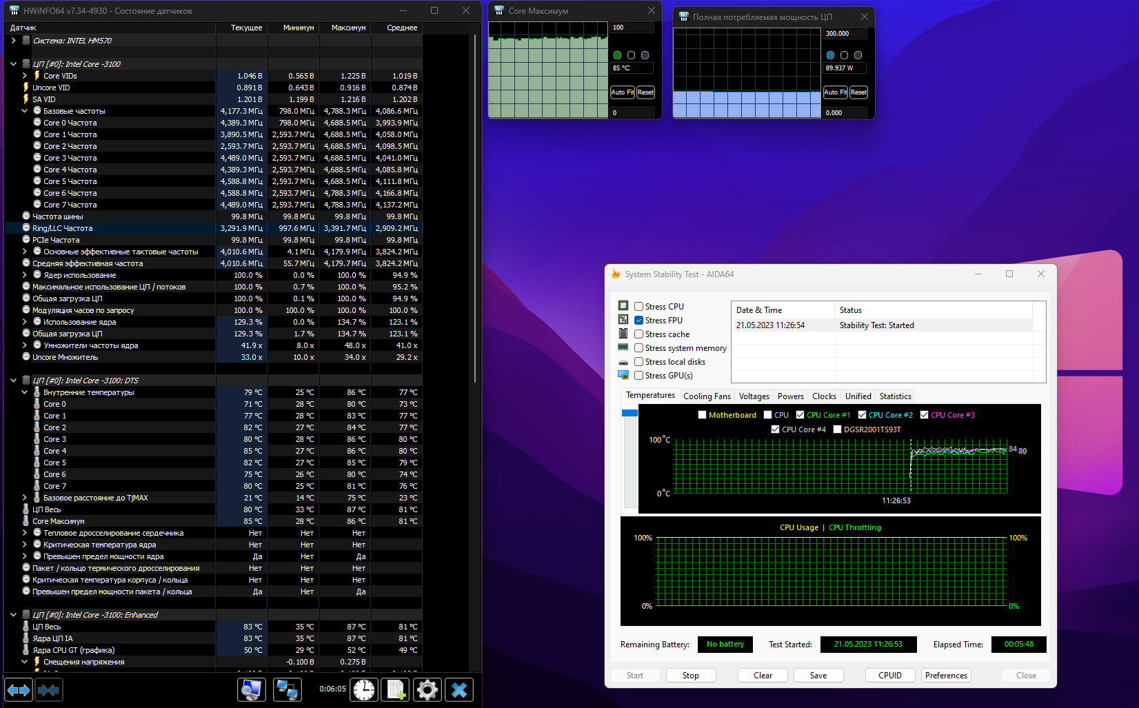 Даже на 4500 по всем ядрам - 100 не держит