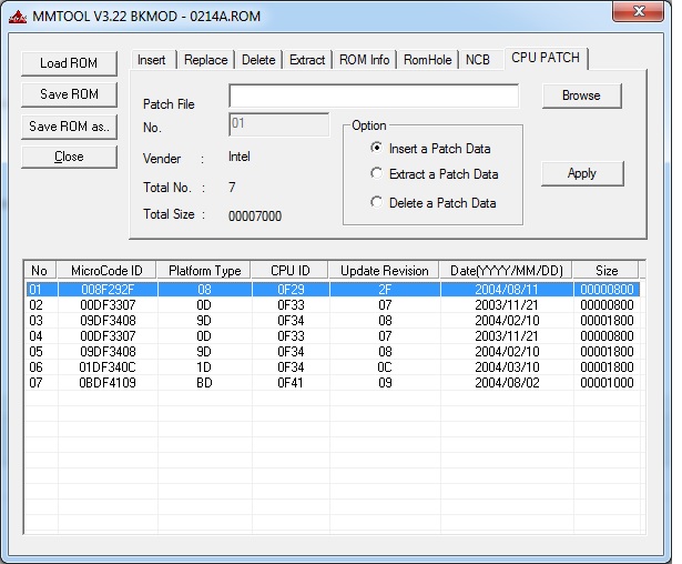 DeathBringer Вот биос ноута A4L. Я так понял, мне №1 нужен, Platform Type 08 Здесь мне надо сделать Extract a patch data, а в другом биосе Incert a patch data? А зачем, кстати, там третью и пятую строчку одинаковую всунули?