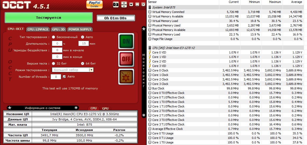 Имеется материнка на B75 чипсете. При тестировании процессоры с tdp 69W