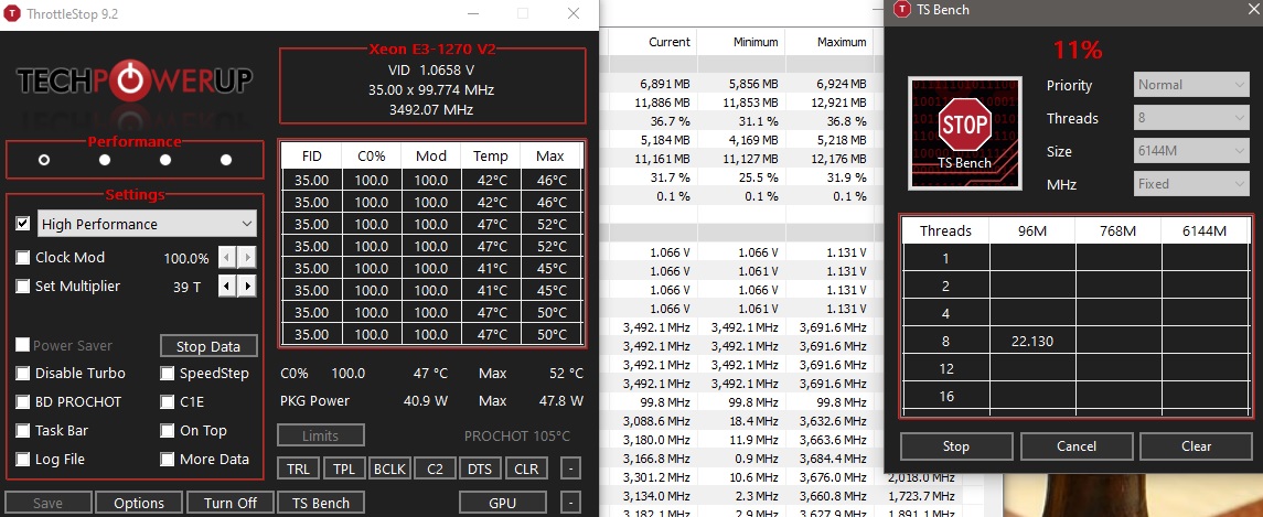 Сброс делал и не один раз - особенно когда пытался настраивать биос (тыкая все подряд) - причем даже удавалось настроить частоту 3.9 на 1 ядро, но при тесте сразу скидывалась до 3.5. Вот тест с ThrottleStop на его же Бенче