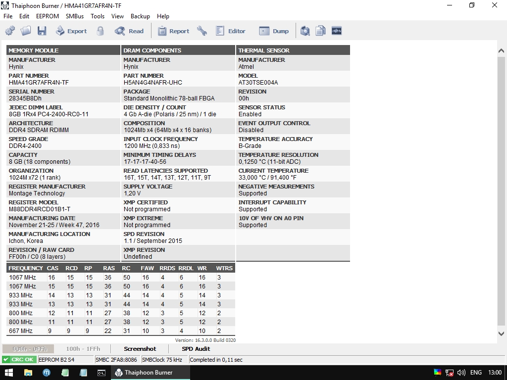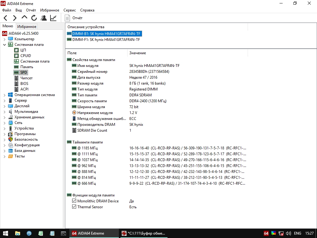 Помогите с проблемой, пожалуйста. Купил на Али материнку Huananzhi X99-TF, процессор Xeon E52678-V3 и память серверную DDR4 2400 ECC Kllisre 2 линейки по 16Gb. Все куплено у одного продавца (не комплект, по частям) - магазин "Re Store". Все заводится, все работает (систему пока не ставил, тестил с флешки со Стрельцом), но память определяется не правильно - BIOS и система видят линейки объемом 8Gb (или 16Gb, если ставить обе линейки). Переставлял в разные слоты, менял местами, чистил контакты резинкой и спиртом. Сбрасывал настройки BIOS. Результата нет. Блок питания новый Chieftec BDF-750C. Под спойлером фото линейки памяти с обеих сторон, скрины с AIDA64 и программы Thaiphoon.