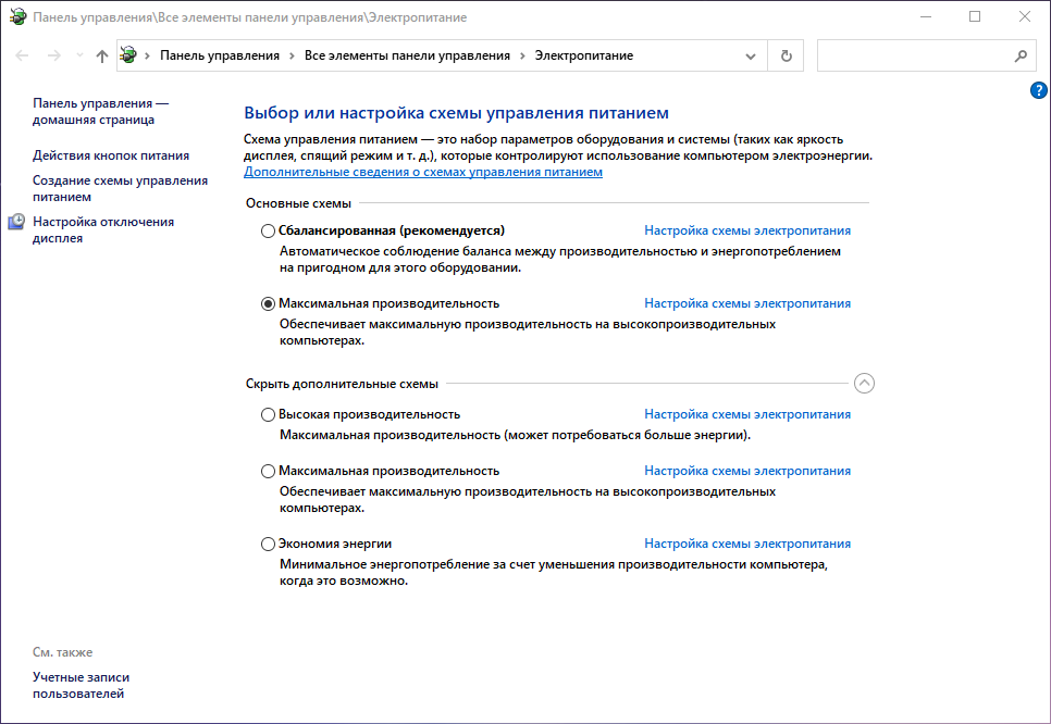 v111 В режиме Максимальная производительность, этих пунктов нет.