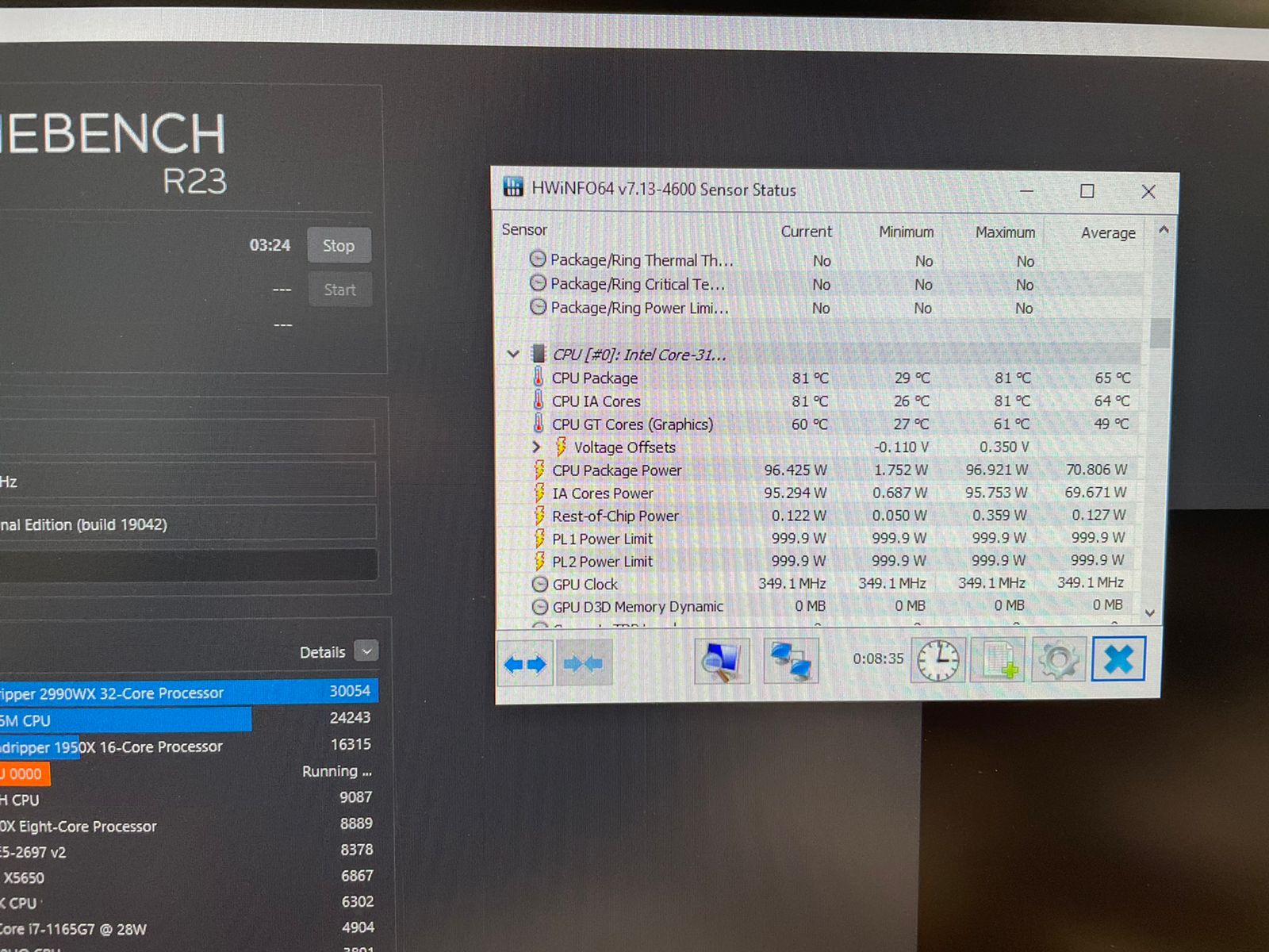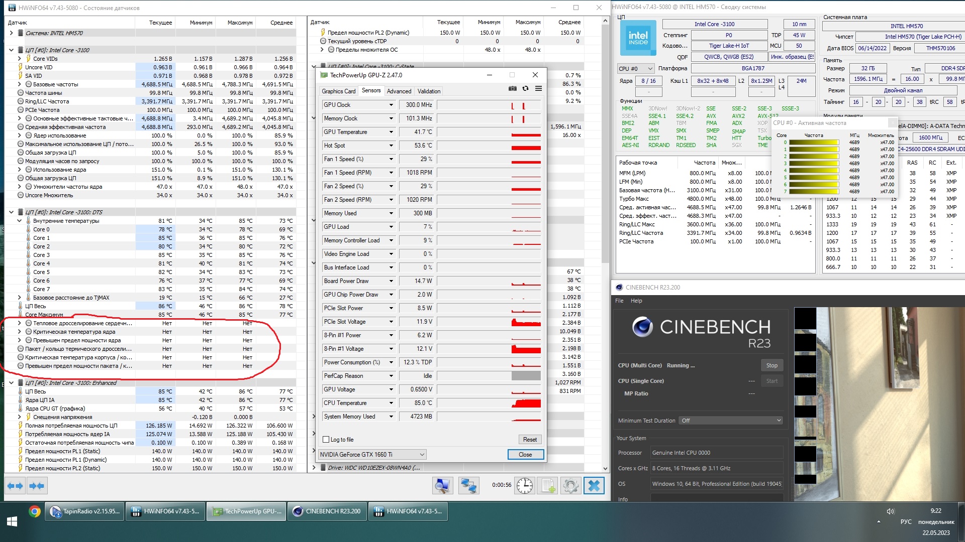 Затрудняюсь сказать, насколько правдивы здесь другие значения напряжений и температур. Навскидку, точно не все правдивы. Возможно, кого-нибудь заинтересует картинка с одновременным отображением данных на другом экране этой SIV и HWinfo: