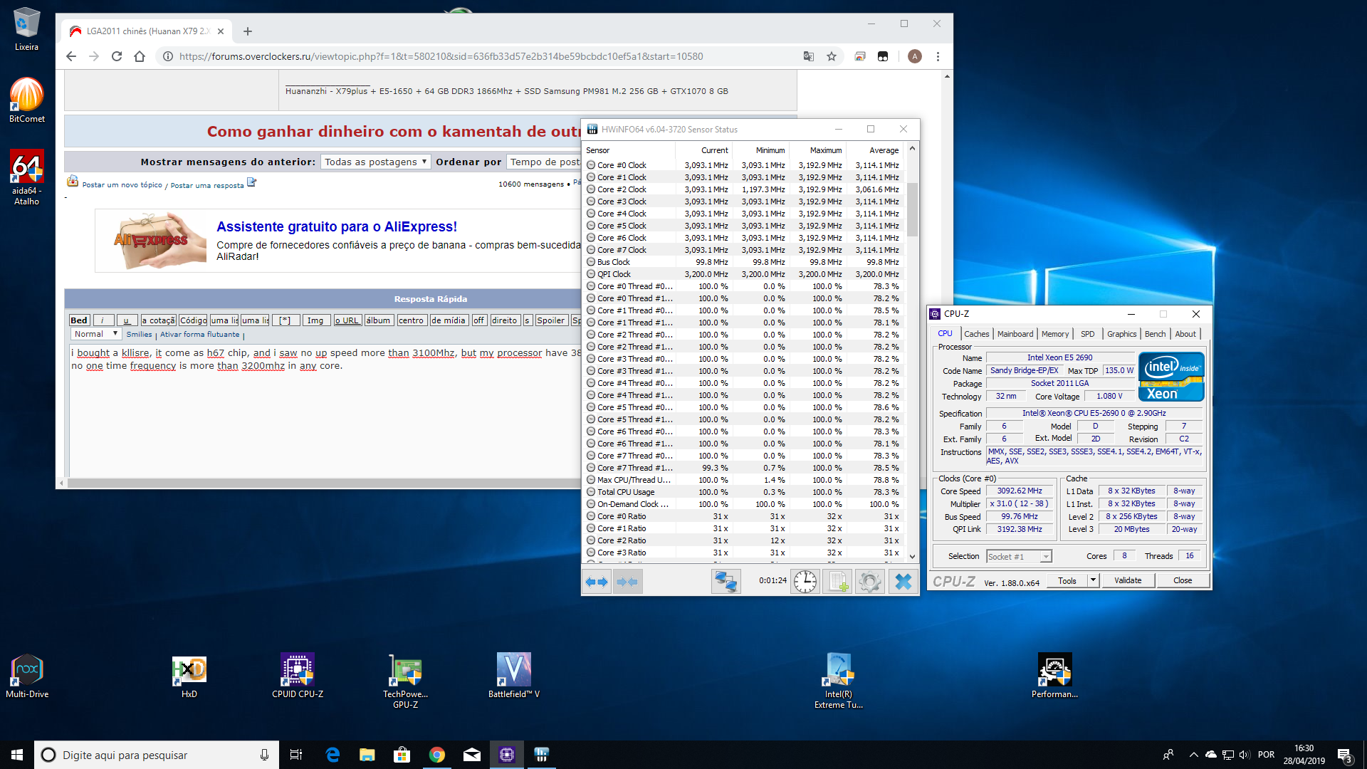 aasoares You've bought an incredibly weird motherboard. I'm definitely not an expert, but I never seen Chinese 2011v1 motherboards with 4MB bios chip and this kind of behavior. From what I see on your screenshots, your motherboard doesn't even set the correct voltage. ~1,08V core voltage and 1,16V VID are too low for this CPU in my opinion (if the reported numbers are true).