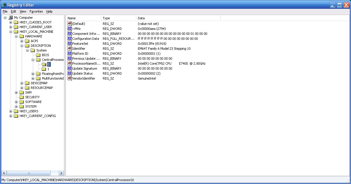 Добавлено спустя 5 минут 3 секунды: А также покажите скриншот regedit с раскрытым ключом реестра HKEY_LOCAL_MACHINE\HARDWARE\DESCRIPTION\System\CentralProcessor\0