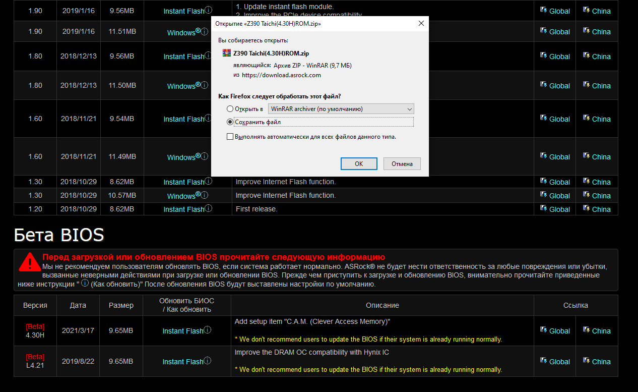 Блин, я уже видос записал, где я вижу бета биос на z390 Taichi З.Ы. !!!!! КАК от 01.04 ??????? Я вижу только старые, от 17.03 !!!!!!! Можете дать прямую ссылку на скачивание нового биоса ????
