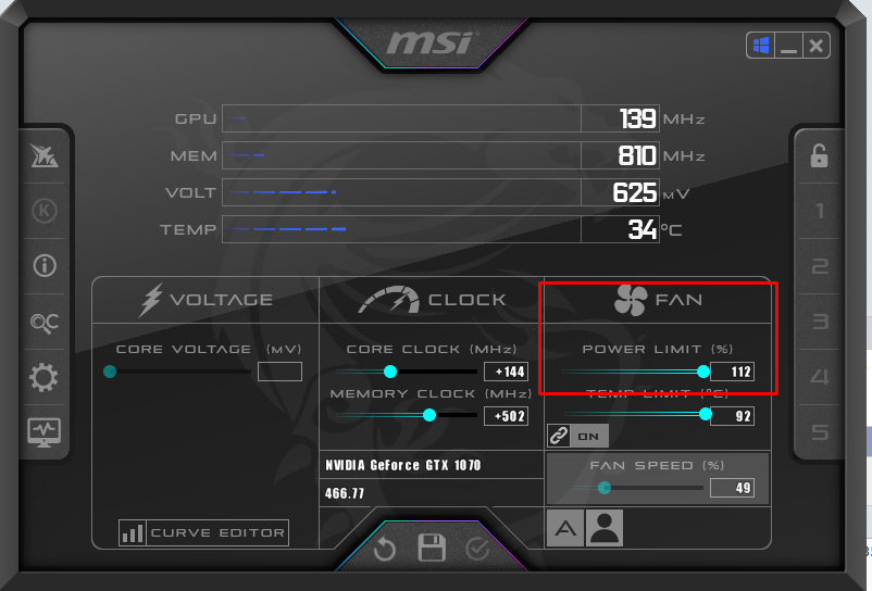 что афтербернер говорит? там можно лимиты же подвинуть.