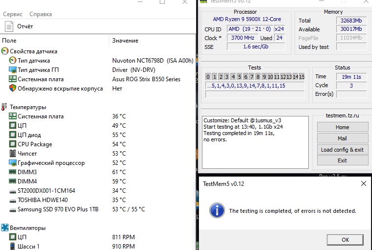 не могу понять из-за чего держатся высокие температуры памяти, 32Gb DDR4 3600MHz G.Skill (F4-3600C14D-32GTZR). Память работает на штатной частоте 3600, XMP врубил и всё, автоматом ставится частота в 1.456, фиксировал dram voltage и eventual dram voltage на 1.4, температуры памяти не изменились. HWinFO показывает на одной планке 38.6С, на второй 38.2С.