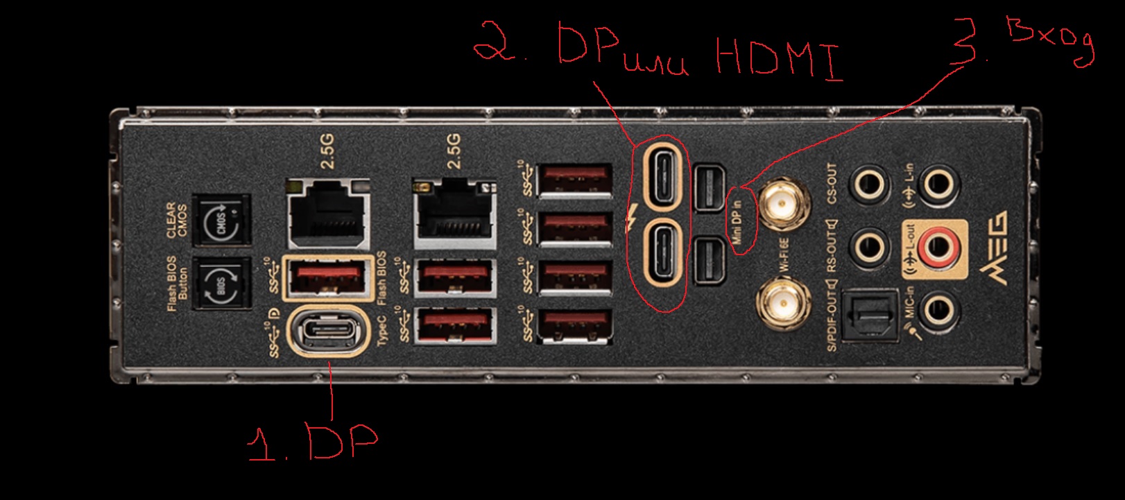 msi meg z690 ace Через какой разъем происходит вывод изображения со встроенного в проц видеоядра? Есть два мини DP и два USB-C, но в обзорах пишут, что можно только с усб выводить, тогда зачем мини DP порт? Вопрос для Msi support Для чего тогда два мини DP и два USB-C? Почему не положили переходник с USB-C на DP