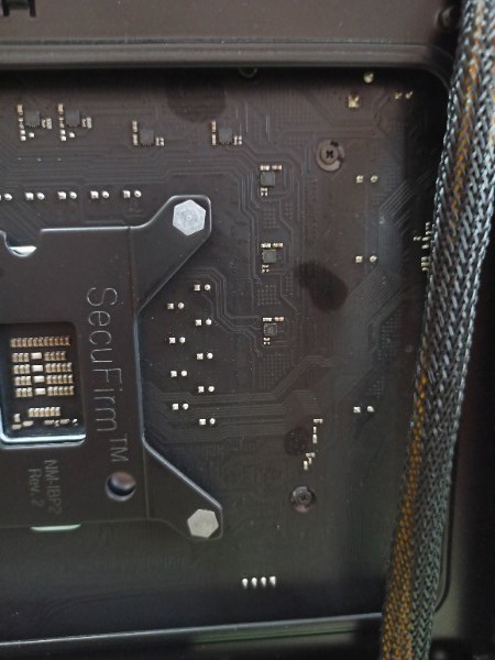 тоже недавно у своей заметил... пришлось потекшие термопрокладки полностью изъять, а пятна затереть спиртом. пока без них, но в планах купить и установить новые.