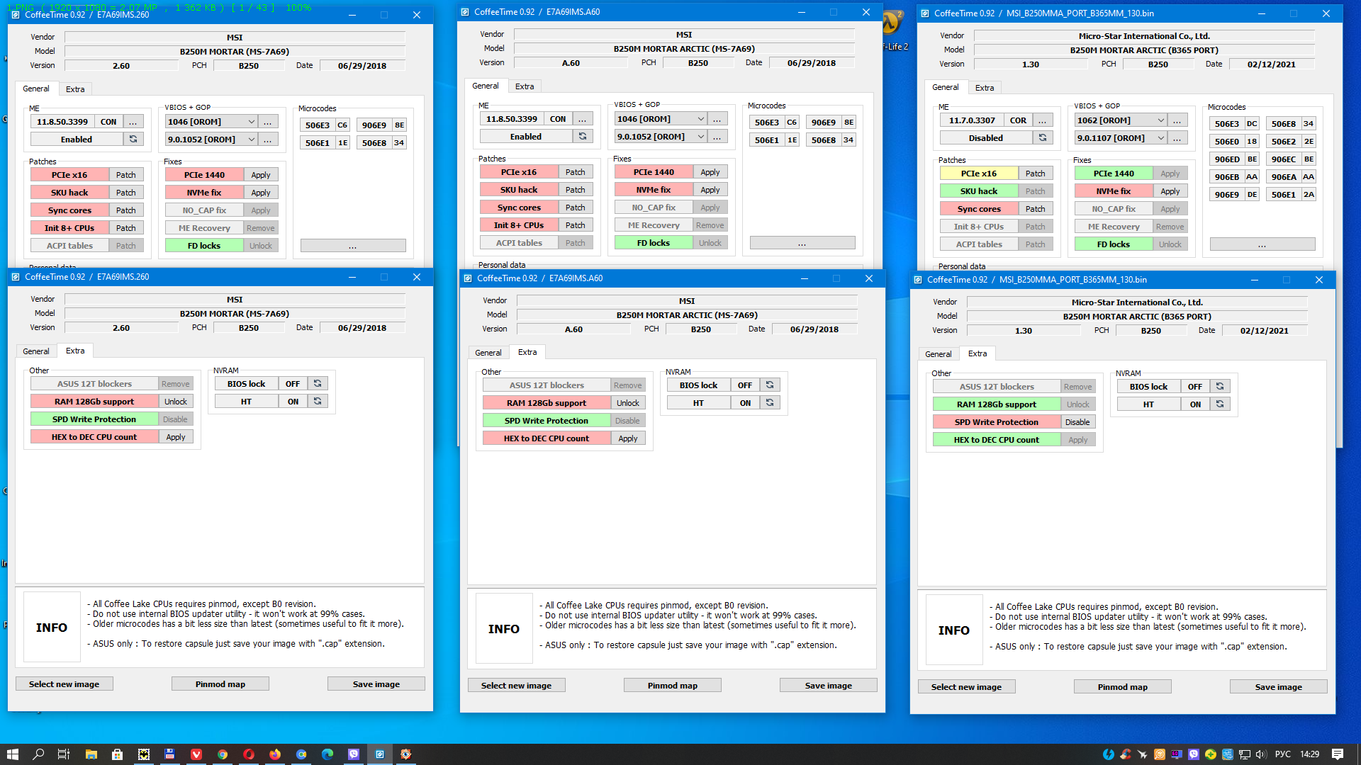 svarmod у меня к тебе просьба посмотреть, в чём различие последних версий официальных биосов у материнок MSI B250M MORTAR и MSI B250M MORTAR ARCTIC. Выложены на сайте они в один день, 2018-07-04. Но номера отличаются, 7A69v26 для MORTAR и 7A69vA6 для MORTAR ARCTIC. Я сравнил их побайтно, различий много. В CT0.92 различий не вижу, а порт отличается, естественно: