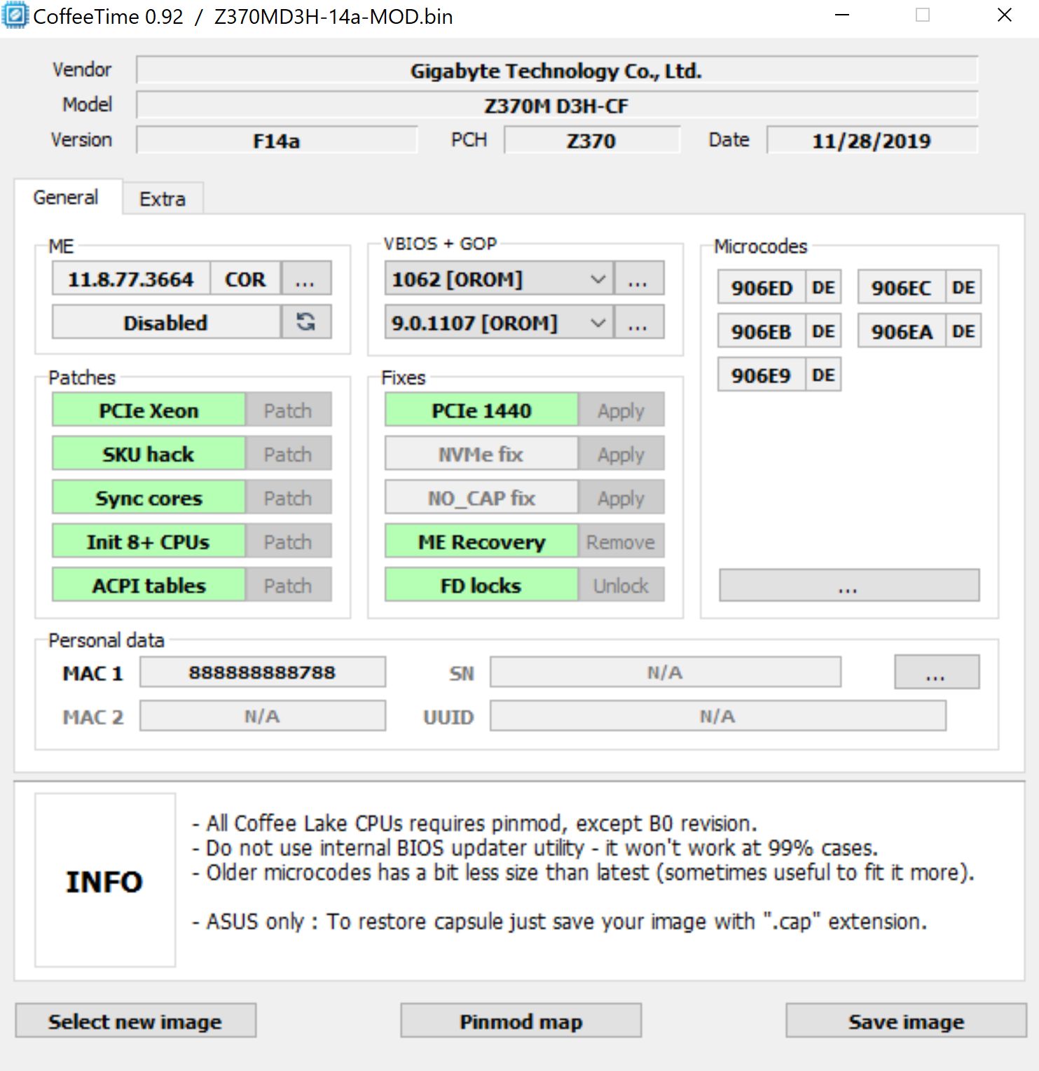 CoffeeTime 0.92 [ Я.Диск ][ Mega ] Автор: svarmod Эта версия не содержит автомодификации, все изменения в биосе проводятся "вручную"; предоставляется без каких-либо подсказок, с GUI, новыми фишками и прочими удобствами. Больше информации о новой версии на [ Страница 407 ]