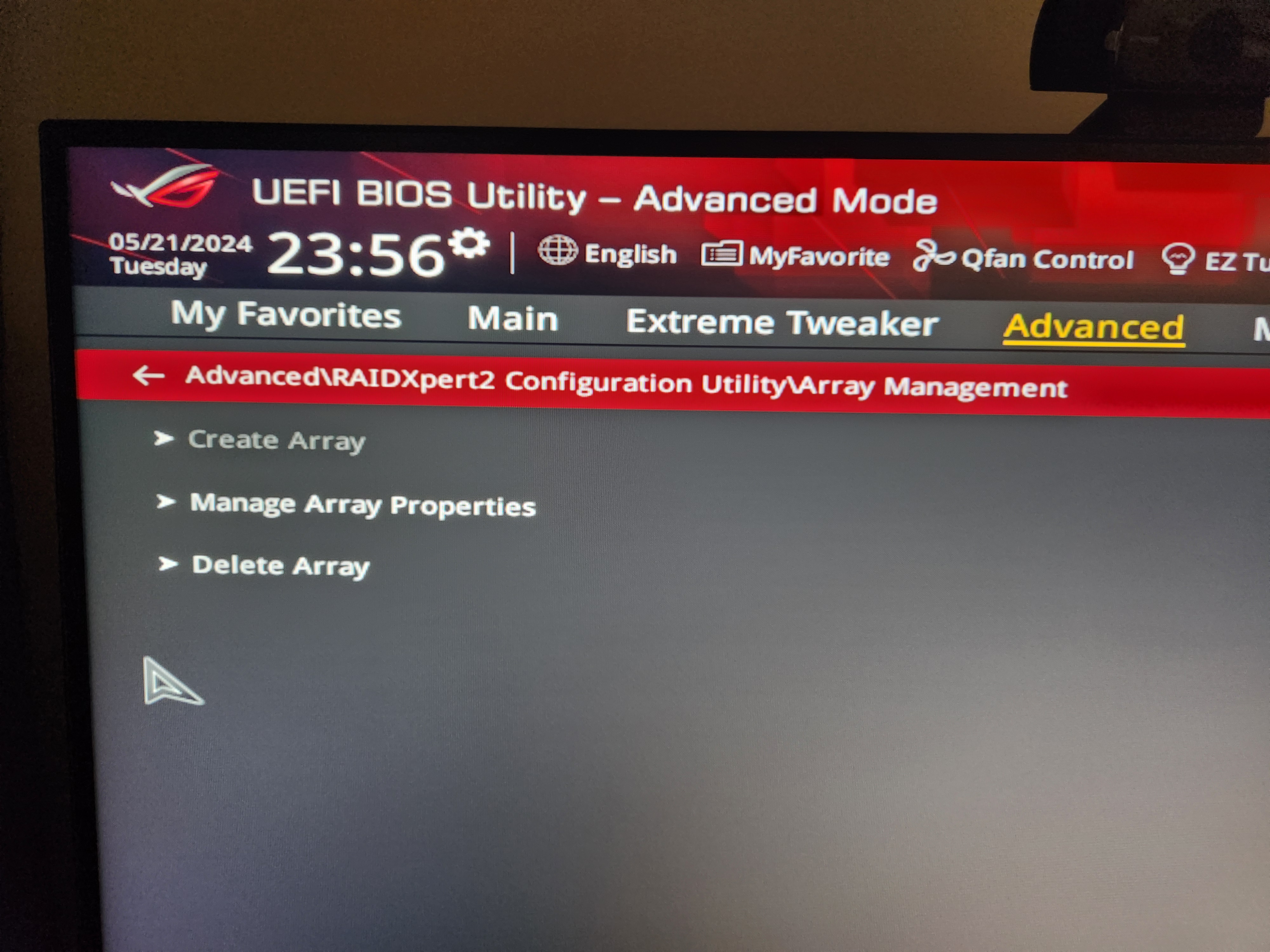 В Биосе в настройках RAIDXpert2 не доступна кнопка "Create Array"