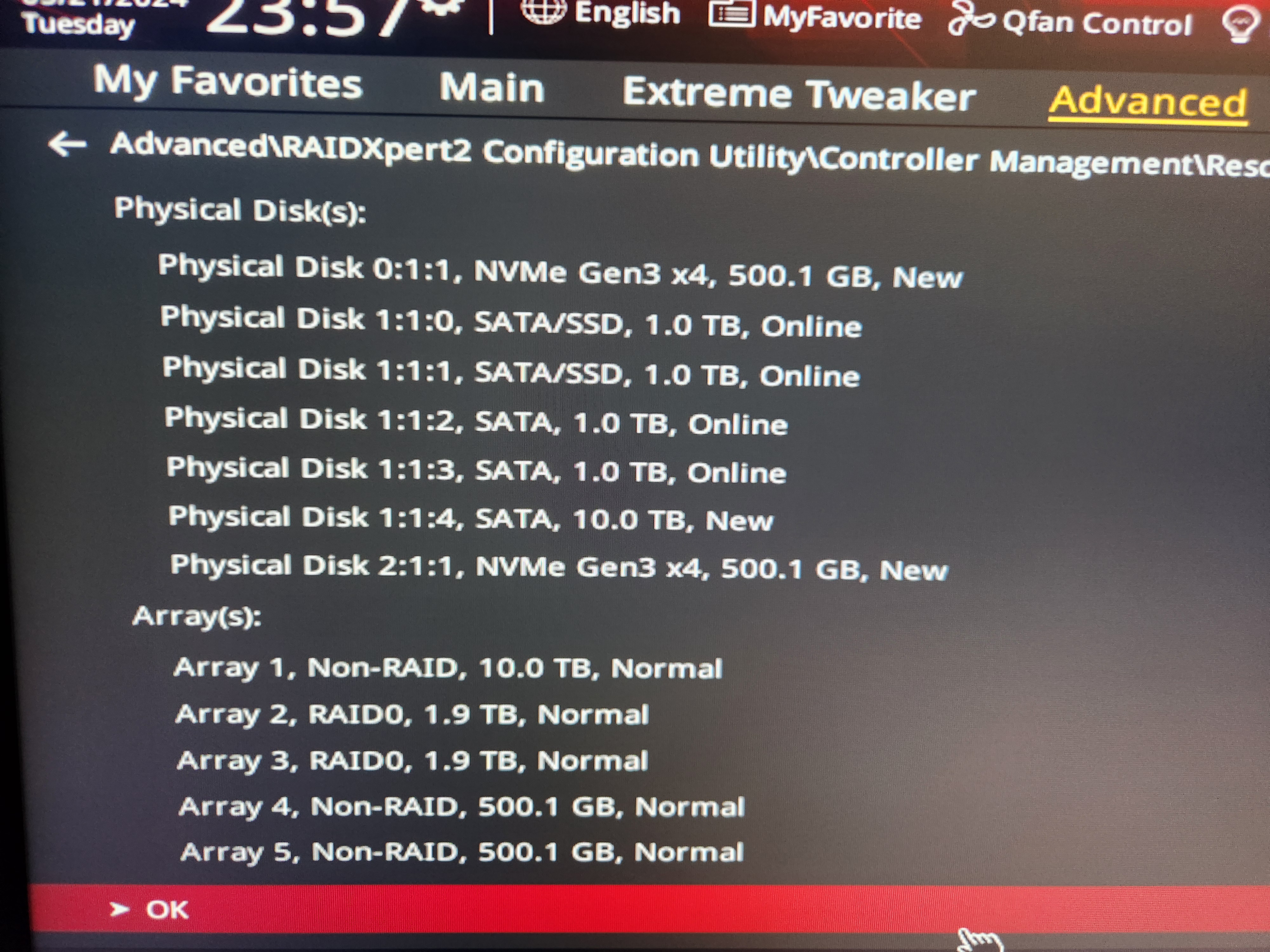 Народ, приветствую. Подскажите почему не получается собрать RAID из двух NVMe M2 SSD (SAMSUNG 970 EVO Plus по 500Gb) на материнке ASUS Crosshair VI Extreme (чипсет x370) Для информации: уже собраны два рейда на 2ух SATA SSD (SAMSUNG 970) и 2ух SATA (WD по 1Тб)