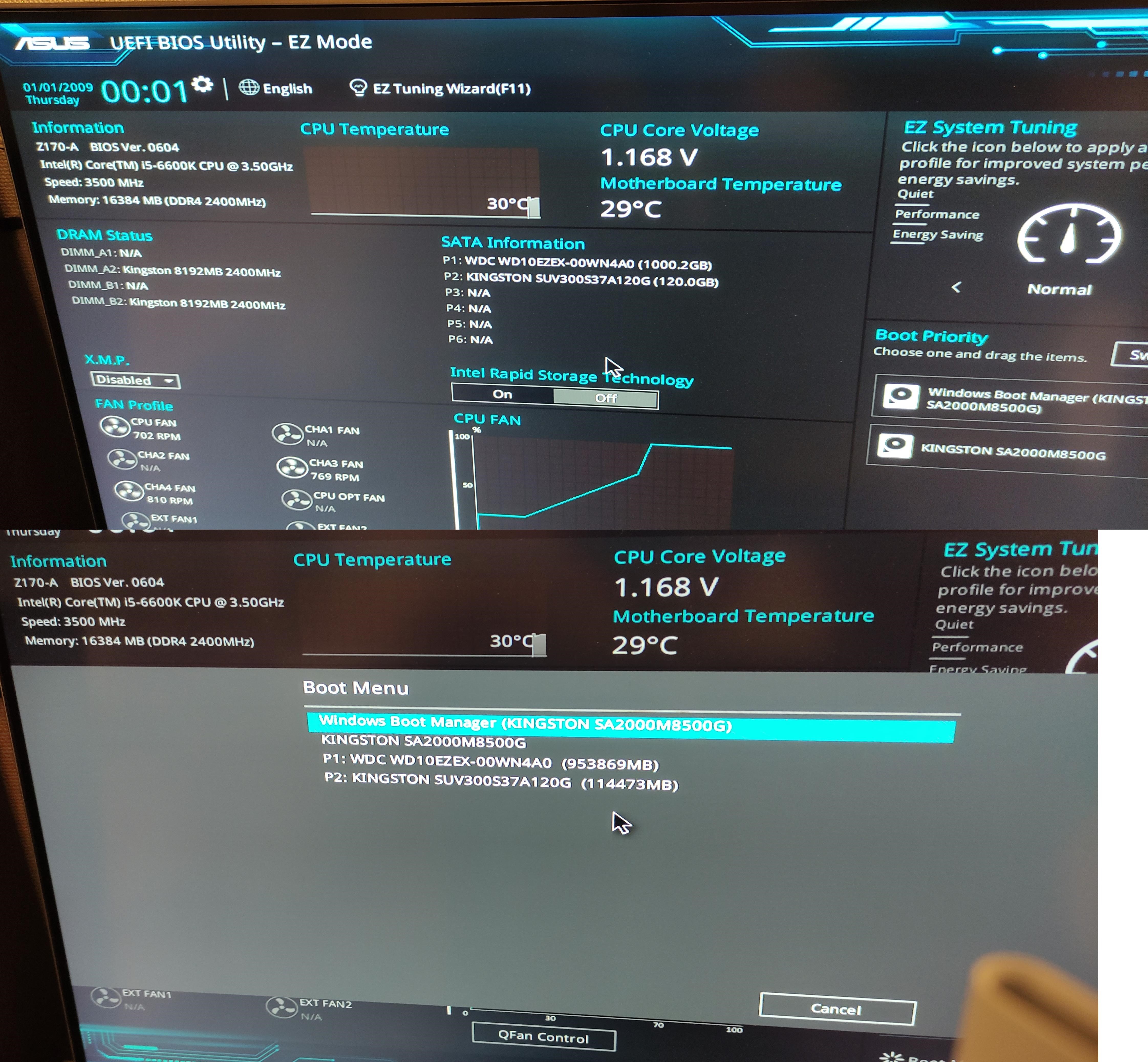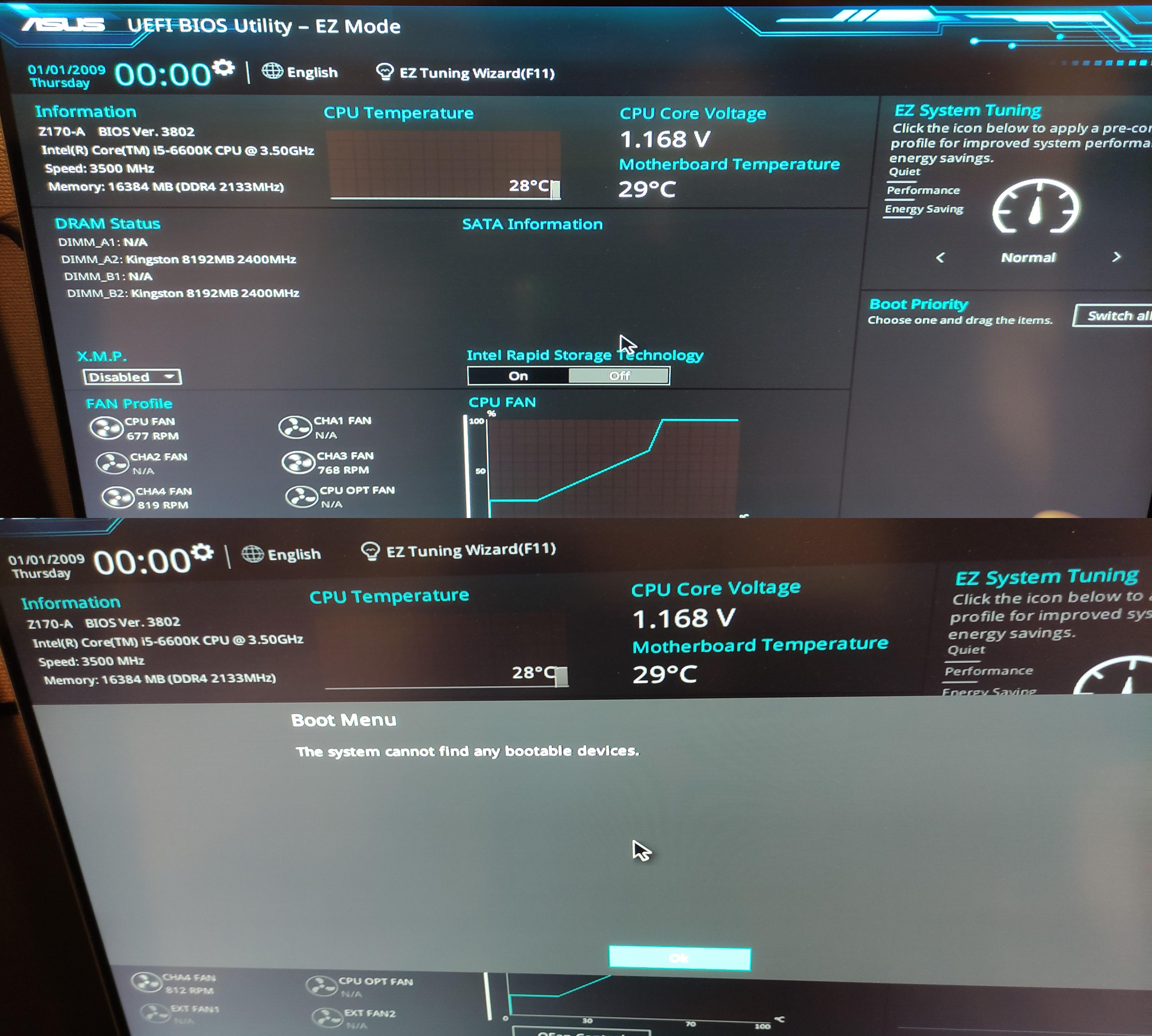 Уважаемый svarmod. Воспользовался Вашим универсальным мод биосом. QQLS и 6600к стартуют и заходят в биос (всё работает как с встроенной так и с дискретной), но оба не видят ни M.2 NVMe, ни SSD, ни HDD. При установке оригинального биоса 6600к видит все накопители (фото прилагаются). Также с помощью программатора считал оригинальный биос и через КТ-0.92 сделал скрины (не знаю нужны ли они). Подскажите пожалуйста, что можно ещё попробовать сделать?
