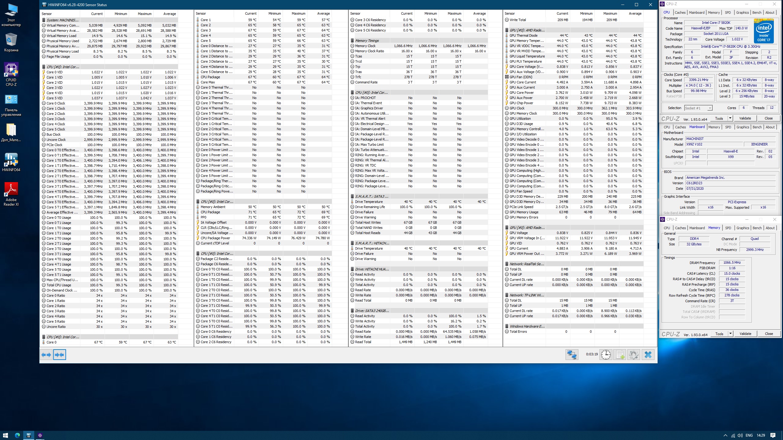 Для разгона множитилем как правило достаточно настроек стокового биоса, но в любом случае не прошивайте биосы предназначеные для анлока турбобуста процессров с заблокированым множителем, типа"с повышенным повер-лимитом и открытыми дополнительными настройками QPI". Для плат Huananzhi и других, использующих схожий биос, нужные настройки находятся в меню IntelRCSetup > Overclocking Feature > Processor и IntelRCSetup > Overclocking Feature > CLR\Ring. Основные параметры: Core Max OC Ratio — множитель ядер. Для Xeon E5 1650 v3 можно сразу установить 41-42. Core Voltage Mode — можно выбрать динамически (Adaptive) повышать напряжение или сделать статическим Core Voltage Override — выставляем напряжение на процессор в милливольтах, к примеру 1250, это будет 1.25 вольта (начать можно как раз с этого значения). Выше 1.30 поднимать с осторожностью! CLR Max OC Ratio — множитель контроллера памяти. По умолчанию равен 30, можно плавно повышать до 33-35 и тестировать производительность и стабильность. Core Voltage Mode — напряжение контроллера памяти. Аналогично Core Voltage Mode, но не выше 1250. Процессоры Haswell очень чувствительны к напряжению контроллера памяти, более-менее оптимальным считается 1.25 вольта, поднимать выше стоит с особой осторожностью.