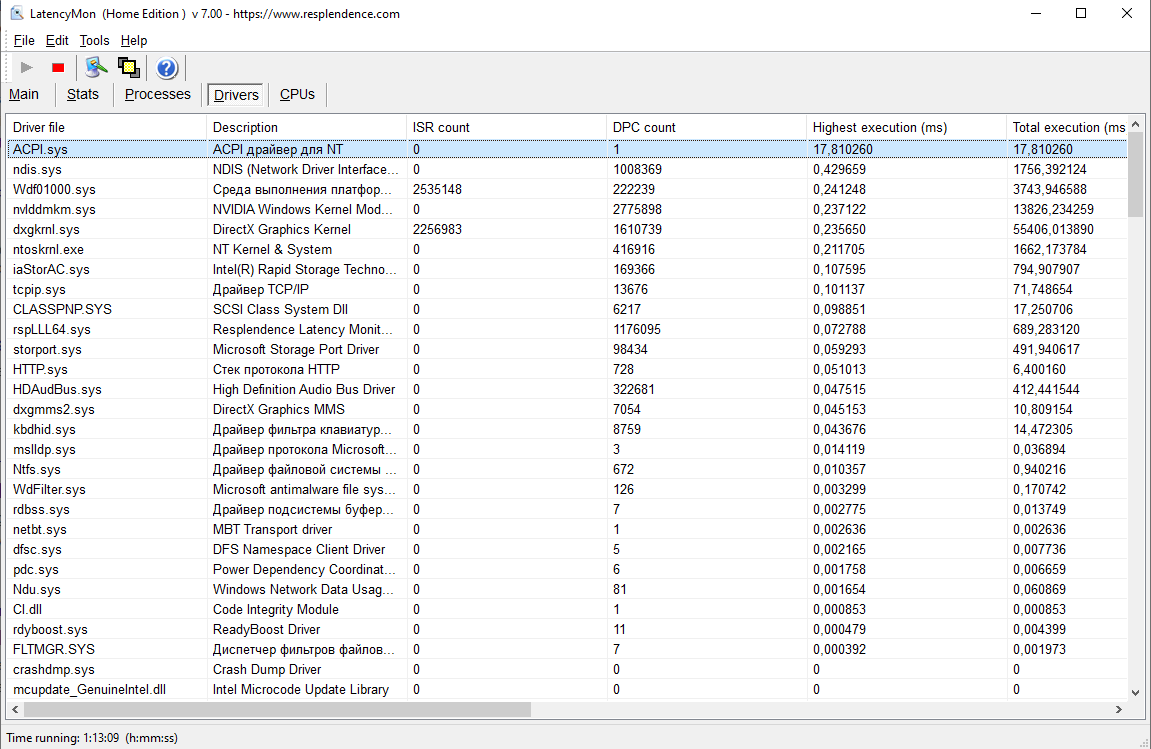 Зря вы так,я потом ставил Microsoft Windows toolbox (точного названия не помню) в котором можно записать и отследить показатели системы и в многом они повторяли результаты LatencyMon. Другое дело что сделать что то трудно когда все упирается в драйвера и фиксить это все должны разработчики и биосов в том числе.
