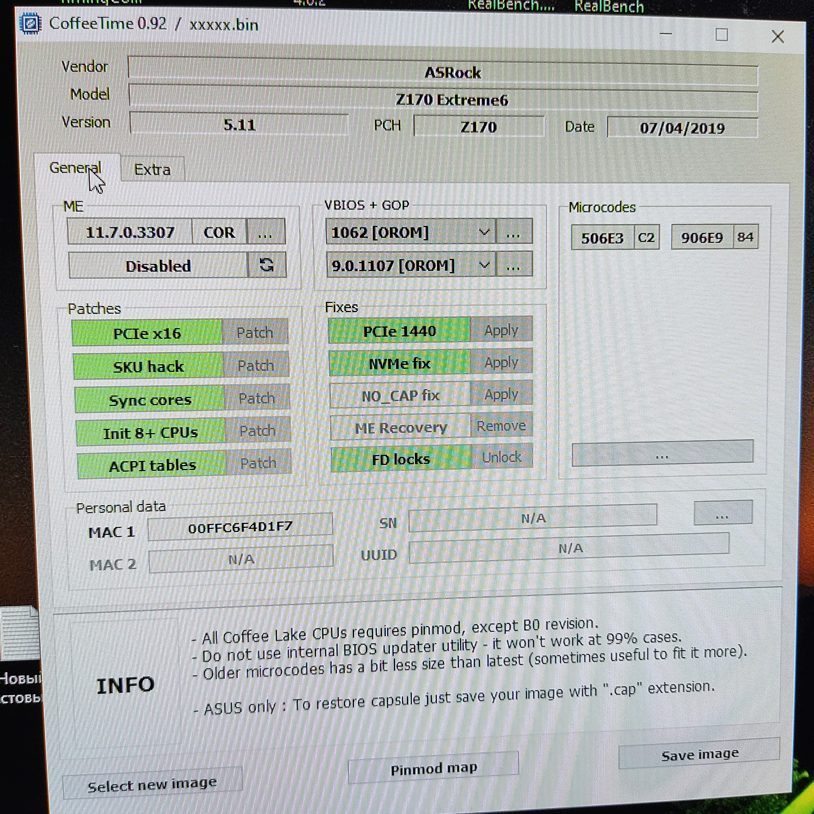 На модифицированных биосах по-прежнему будут работать серийные Skylake и Kaby Lake, если оставить их микрокоды (506E3 и 906E9 соответственно).