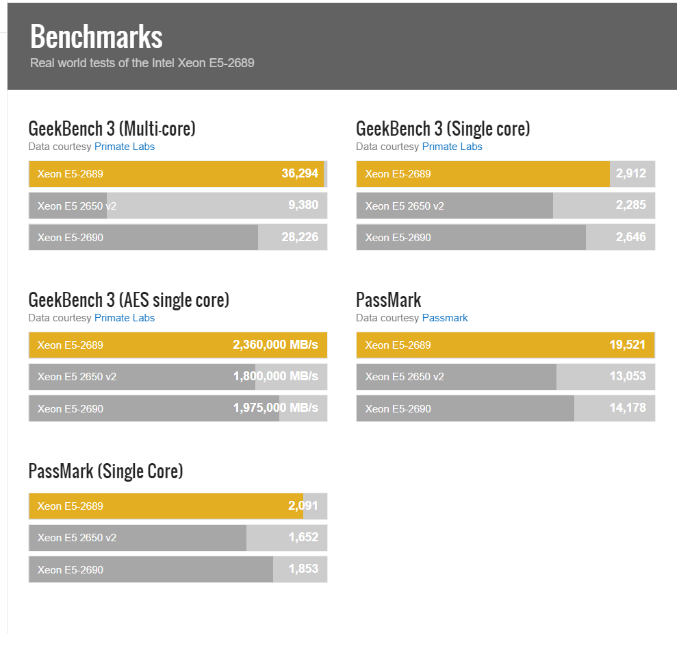 Devijack Как-то не вызывают у меня доверия результаты тестов, в которых процессор с идентичными ядрами, но на более низких частотах, показывает существенно более высокую производительность. 2690 не только в полной нагрузке больше частоту дает, у него матрица частот турбобуста выше. Сравнивайте: E5-2690 vs E5-2689