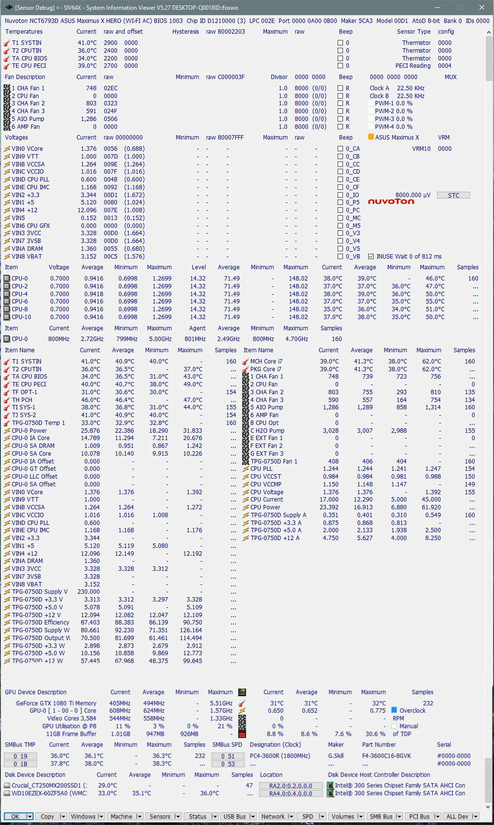 Приветствую всех. Являюсь владельцем ASUS ROG Maximus X Hero (без Wi-Fi), BIOS 1003, ревизия - 1.01. Столкнулся с проблемой отсутствия термодатчика VRM (как и многие владельцы M10H). Предлагаю владельцам подобных плат скооперироваться и выяснить - в чём же всё таки истинная причина (форумы ROG, AIDA64 и HWiNFO проштудированы, теорию про заменённый контроллер знаю). Так выглядит мой Sensor Debug в SIV - поделитесь своими, если у вас работает датчик VRM. Будем искать отличия) #77