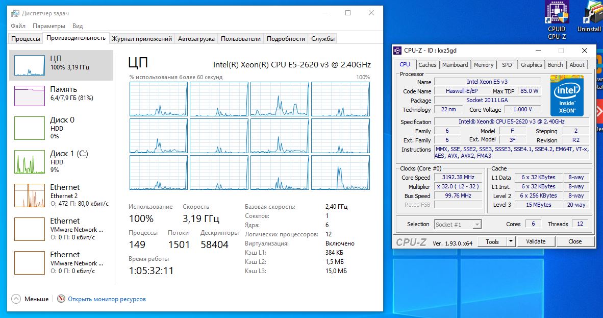 Процессор на момент этого сообщения Intel Xeon E5-2620 v3 Моей целью было сделать unlock turbo boost, чтобы повысить частоту процессора при нагрузке. Была: 2.59 Стала: 3.19