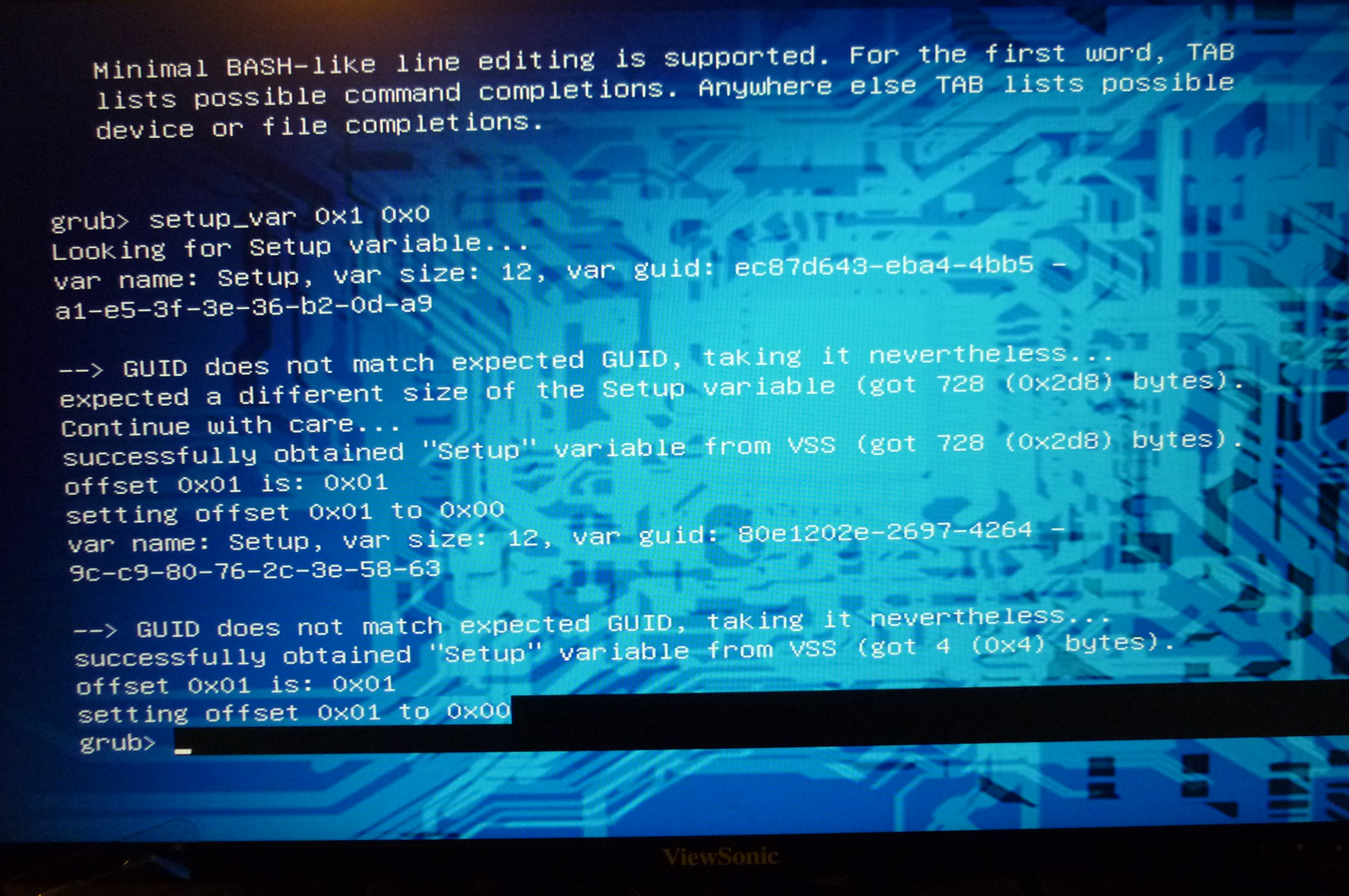 Добавлено спустя 2 часа 4 минуты 38 секунд: результат есть, раньше с видяхой была остановка на пост коде 97 и черный экран, теперь посты доходят до A3, картинка биос появляется и происходит загрузка с диска или флешки. Да, как в материале на инглише про сата AHCI https://www.bios-mods.com/forum/Thread-READ-FIRST-Access-Advanced-settings-through-EFI-shell надо выставить Legacy Support: Disable, иначе не будет грузится grub оболочка