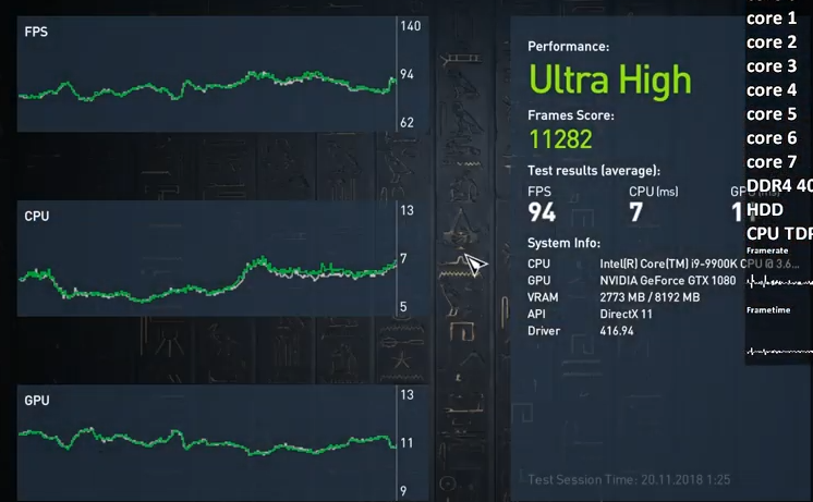Кстати видно что плавнее FPS и GPU на 2678. У меня весь тест правда с упором в ГПУ 1280x720 ультра.