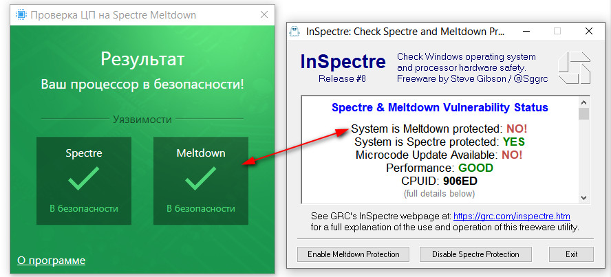 Защита от Meltdown осуществляется средствами ОС, если не изменяет память.