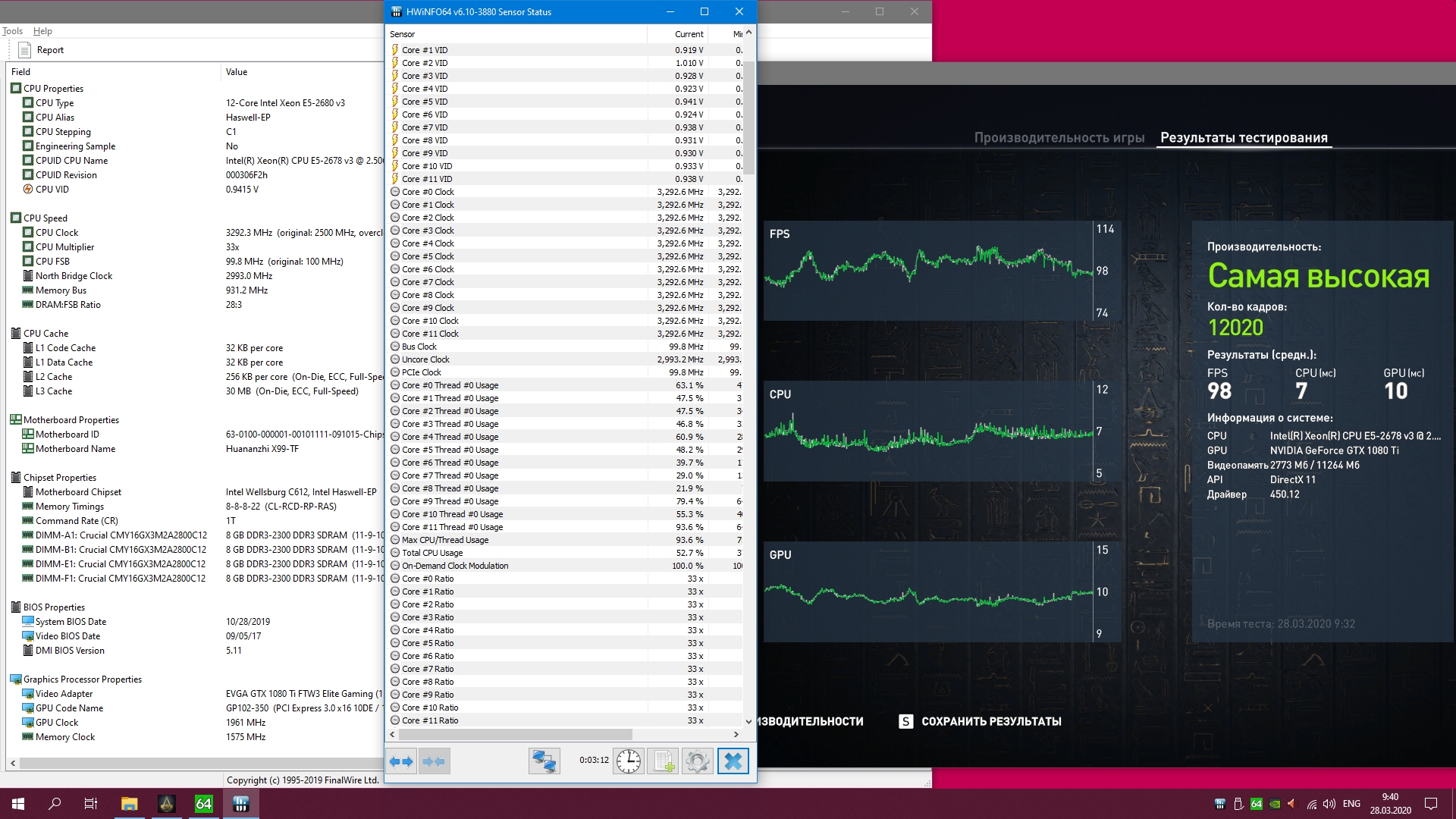 Вот кстати мой результат(720p ультра) на 970 печ и 2600К@4800 это к вопросу быстродействия на ядро у 2678.