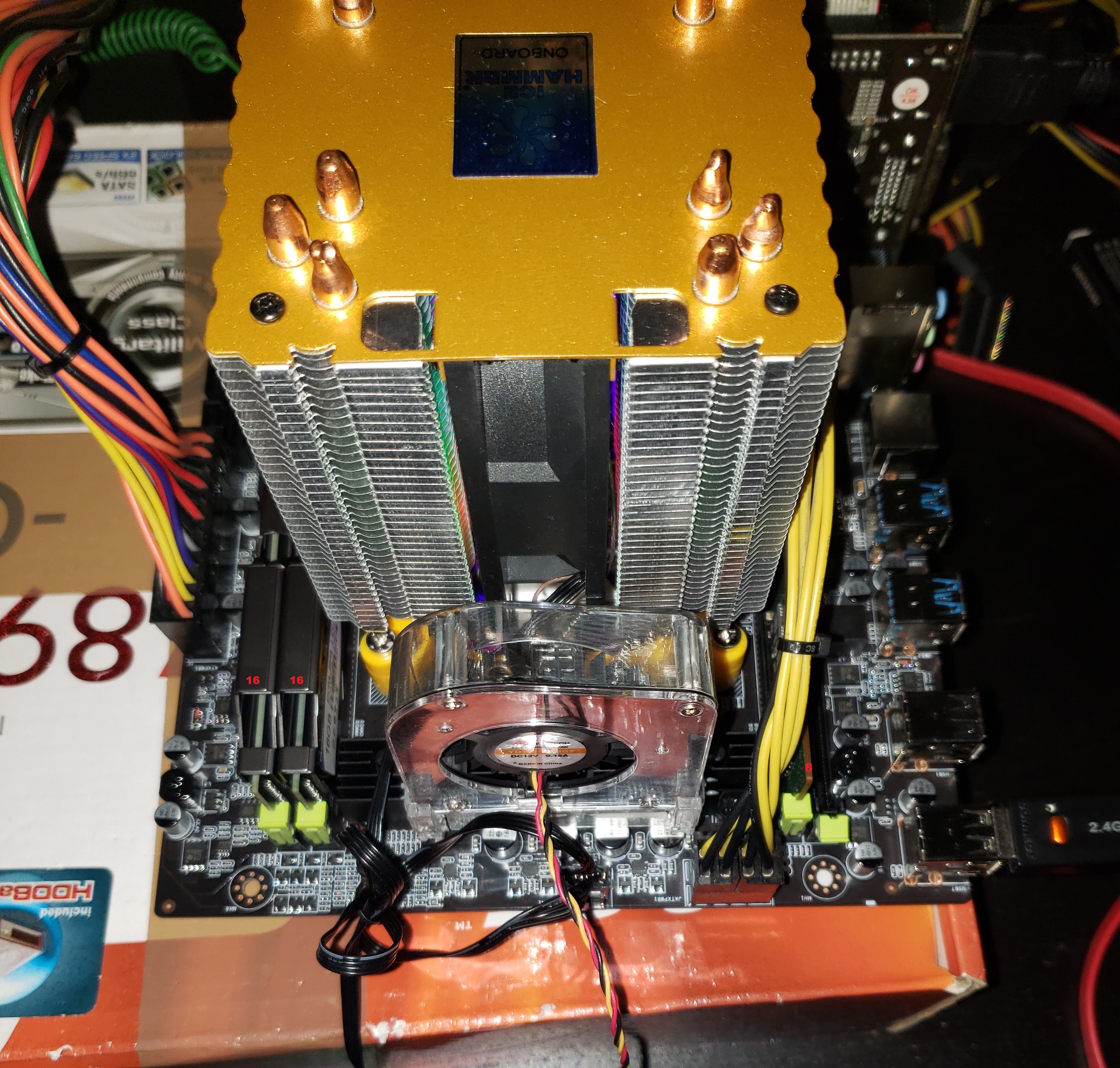 Очередная порция маразма от X99Z V102 - не стартует с плашкой памяти на 16 Гб. Ни в какую. Пробовал разные, пробовал в разные слоты... ЗАТО! если поставить в слот DIMM1 модуль на 8 Гб, то с модулями на 16 Гб в других слотах стартует!