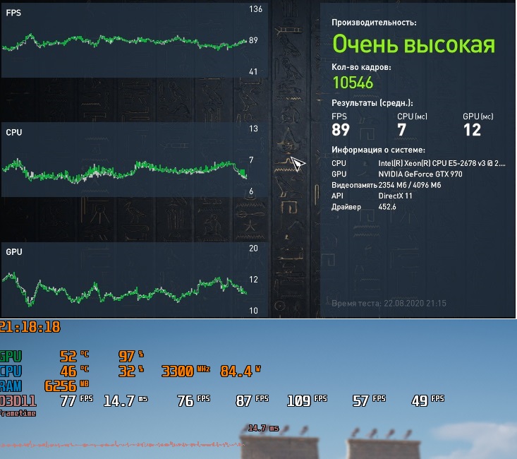 Пожалуйста, с 50% рендером. Но один фиг упор в ГПУ, только в самом тяжелом месте на долю секунды была не полная загрузка. Статистика слева направо: фпс фреймтайм минимальный средний максимальный 1% 0.1%