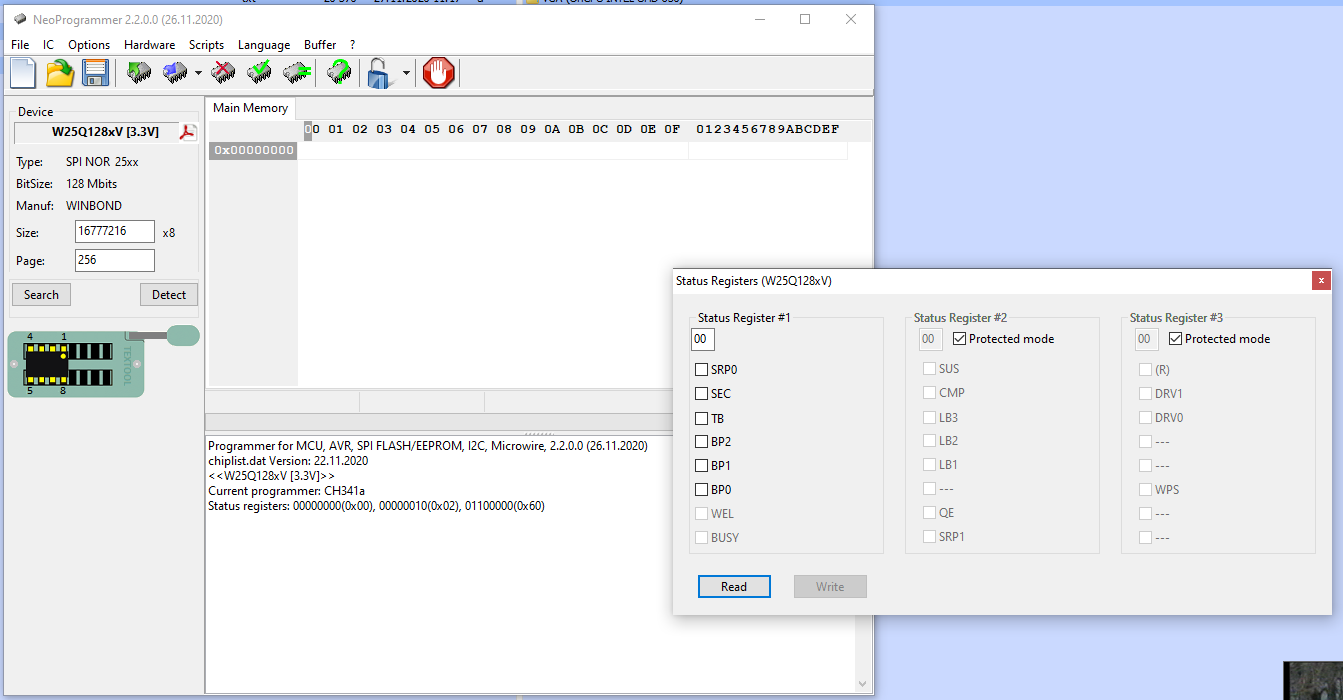 Ребят, кто знает, какая прга позволяет менять 9 бит при прошиве чипа? Подогнали какой-то странный программатор CH341A с кроваткой га 2 чмпа. Дрова под него нашел, а софт подобрать не мсогу. Хотя сомневаюсь что 341-ые могут биты прешивать.
