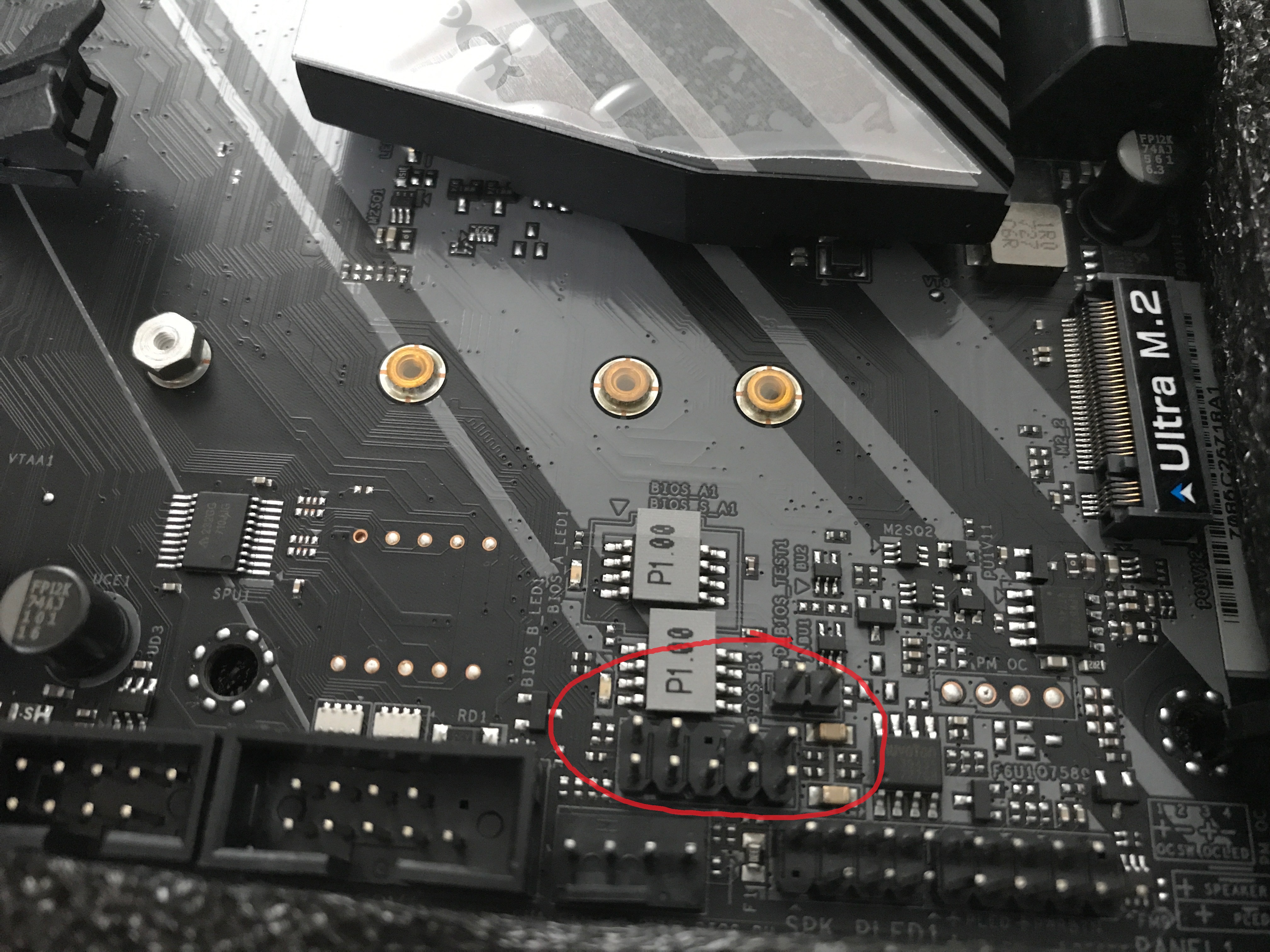 Те что 2 штыря, служат для ручной активации резервной второй микросхемы биоса. установка на них перемычку активирует вторую резервную микросхему биоса на постоянной основе. Те что 9 штыря, служат для прошивки биосе через программатор со спец кабелем. без перемычки на 2 верхних штыря будет прошиваться первая основная микросхема биоса, а с перемычкой будет прошиваться вторая резервная микросхема биоса. Надеюсь доступно объяснил.
