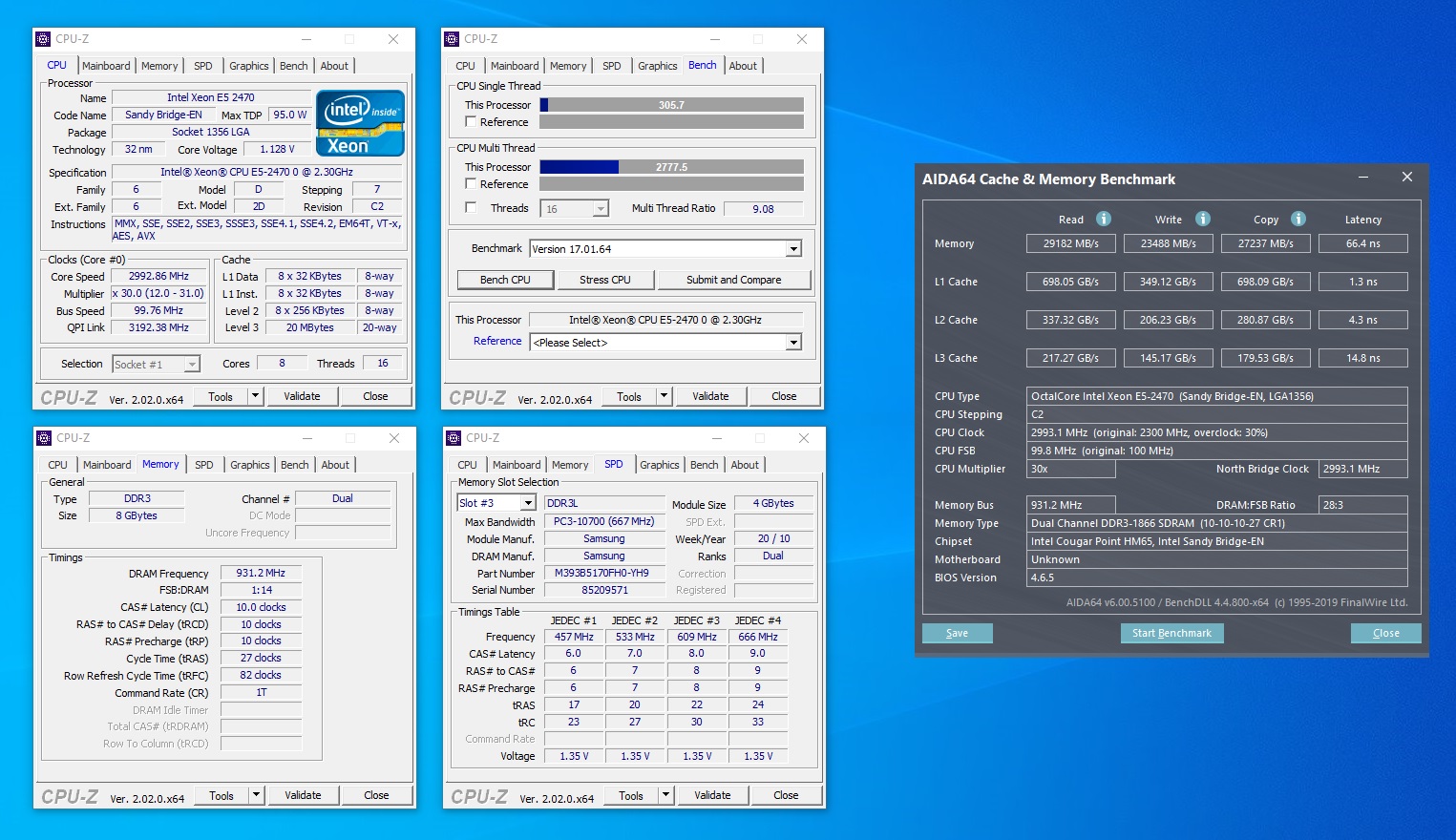 К памяти платформа действительно привередливая. С хорошей десктопной памятью Kingston HyperX 1866 оно у меня нормально не заработало. На скриншотах сервернаяя ECC 1333. На 2133 стабильно заставить её работать не удалось. Только 1866 получилось. Попробую другую серверную, которая 1866 в оригинале, может она на 2133 заработает. Вообще заметных преимуществ E5-2470 по сравнению с E5-2470v2 нет, да, чтение из памяти немного быстрее 29 vs 25, задержки тоже немного лучше 66 vs 70, но в общем и целом оно не стоит потери двух ядер как мне кажется.