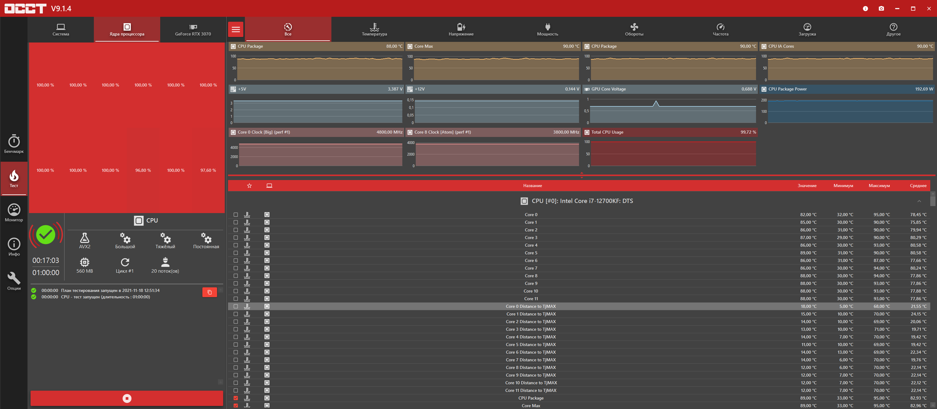 ailya1960 С лимитами пока не разбирался, времени нет, да и, питальник пока старый, новые ещё не пришел. А так - частота ядер чуть прыгает. Тут ещё проблема с мониторингом, большинство программ не понимает 12 поколение.