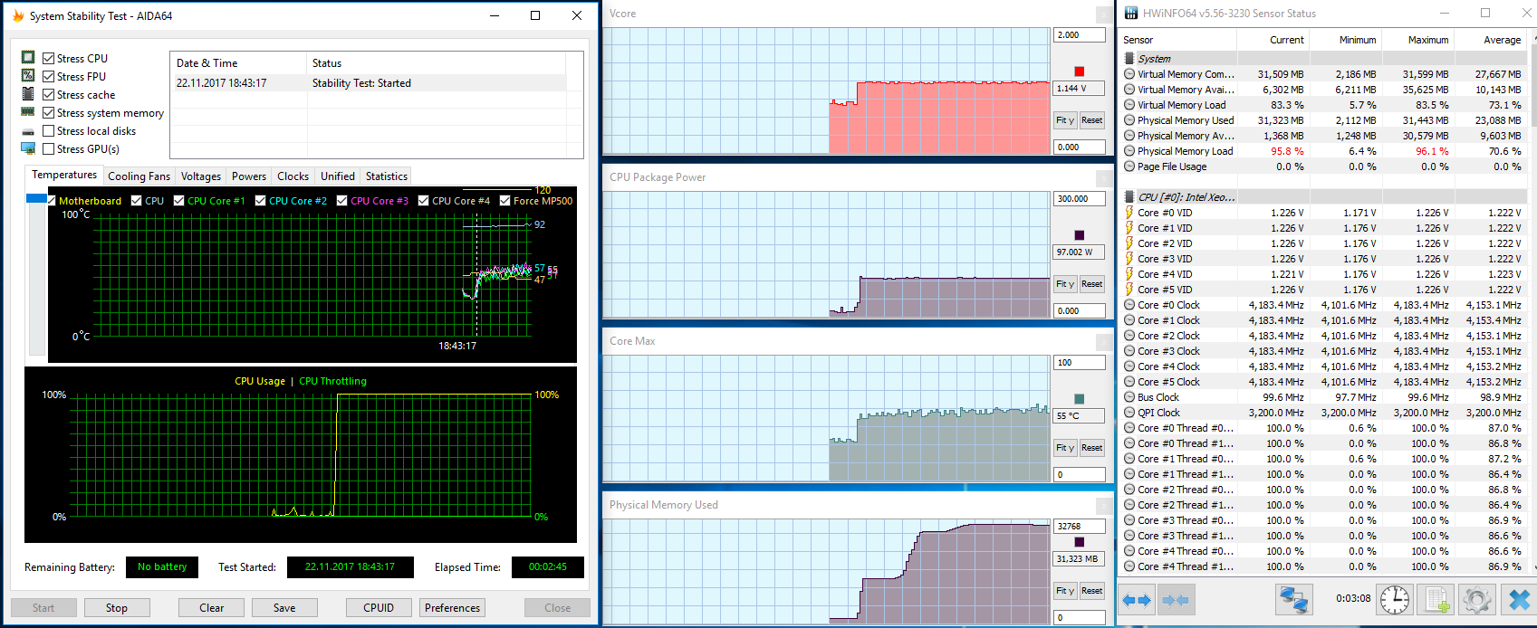 А в LinX на этой частоте потребляя те же 1,144 воль выделяет 132w и уходит в синий экран или зависание... Вывод один: просто плата скорее всего мало вольт выделяет процессору... надо искать способ поднять вольтаж...