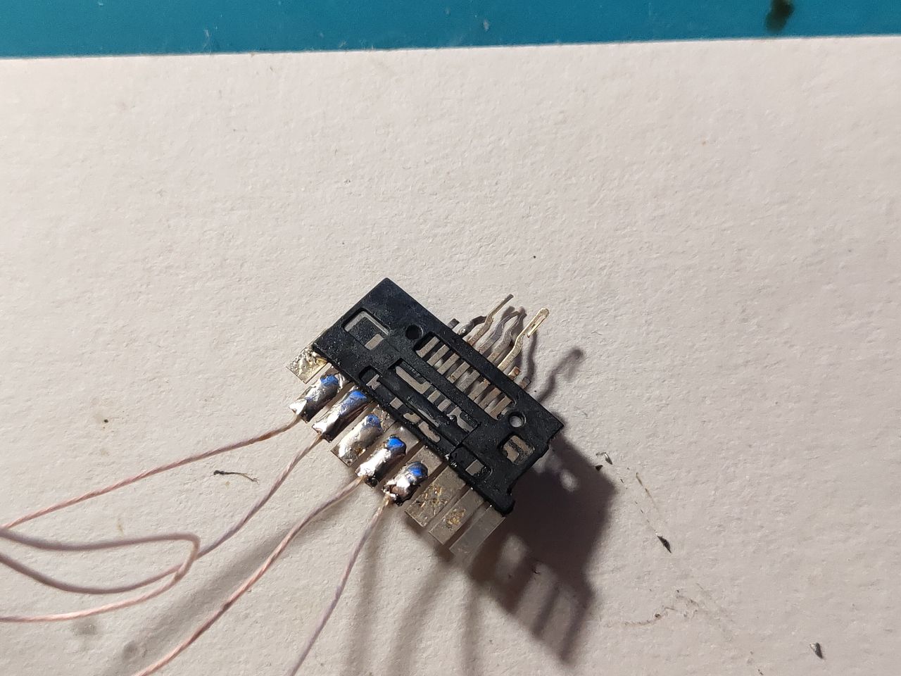 Из под винды корректно считать/записать дамп не выходит по этому нужен программатор(любой умеющий i2c eeprom или по другому 24cXX) Подключиться к модулю можно используя не нужный слот DDR4 от дохлой платы, у меня такого не оказалось, по этому припаялся к модулю(остаётся лужение на контактах,припой полностью убирается оплёткой но цвет естественно остаётся серебристый, можно отклеить радиатор и отпаять чип SPD но так ещё сложнее), а потом я придумал коркалыгу из переходника SD/microSD