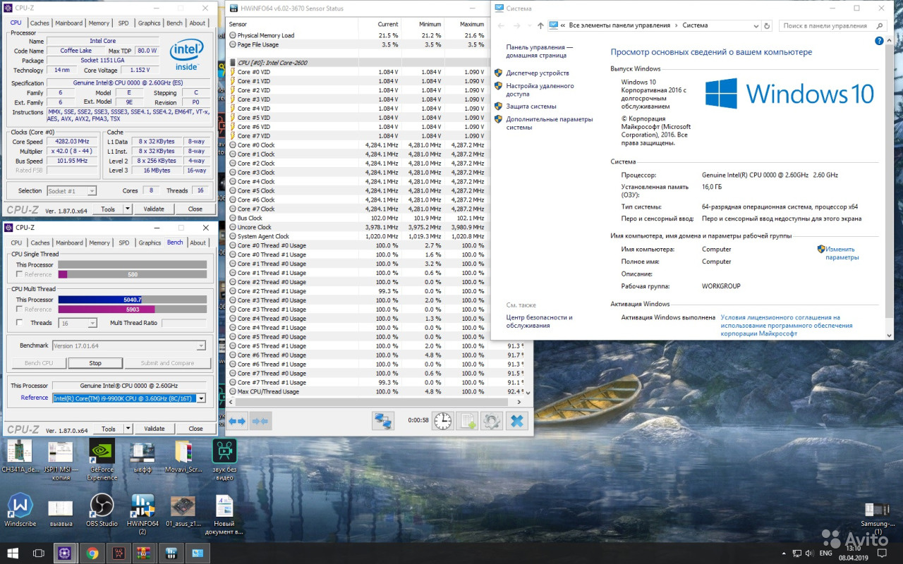 Пару тестов сравнения с полноценным 9900K(Asrock z370 Extreme 4)