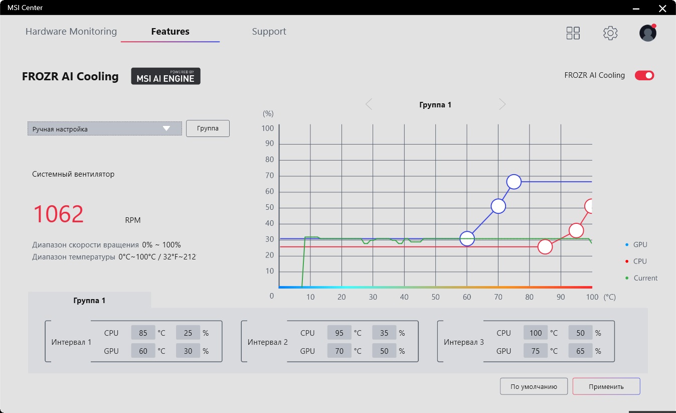 Окей, насчет видеокарты понятно, но процессор то установлен в материнскую плату от MSI, почему для него недостуна Frozr? Получается вообще нет никакого адекватного способа управления вентиляторами. Асус делает такое же ограничение для ВК, но по процессору там в любом случае доступно управление вентиляторами, у MSI же получается совершенное бесполезный софт, разве что RGB управлять.